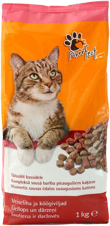 Sausas kačių ėdalas su jautiena PURRRFECT, 1 kg (1,45 € / kg)
