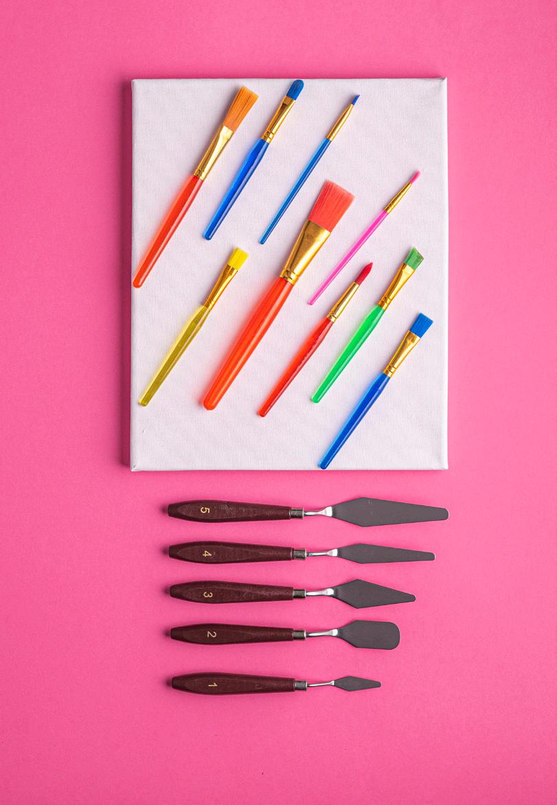 ValiVärvidesegamisekskasutavärvipaletti värvidele,lõuendvõivesivärvipabervastavalt mida kasutad topsiPintslitepuhastamisekskasutaveegatäidetud