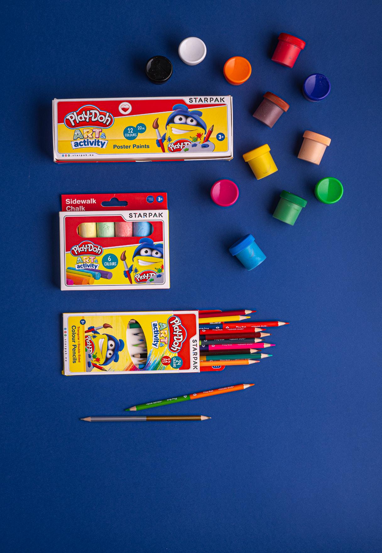 Guašas PLAY DOH, 1 rink. (12 spalvų) 5,99 € Kreidelės JUMBO PLAY DOH, 1 rink. (6 spalvos) 1,99 € Dvipusiai spalv. pieštukai PLAY DOH, 1 rink. (12 vnt.) 3,99 € Skirtingose
