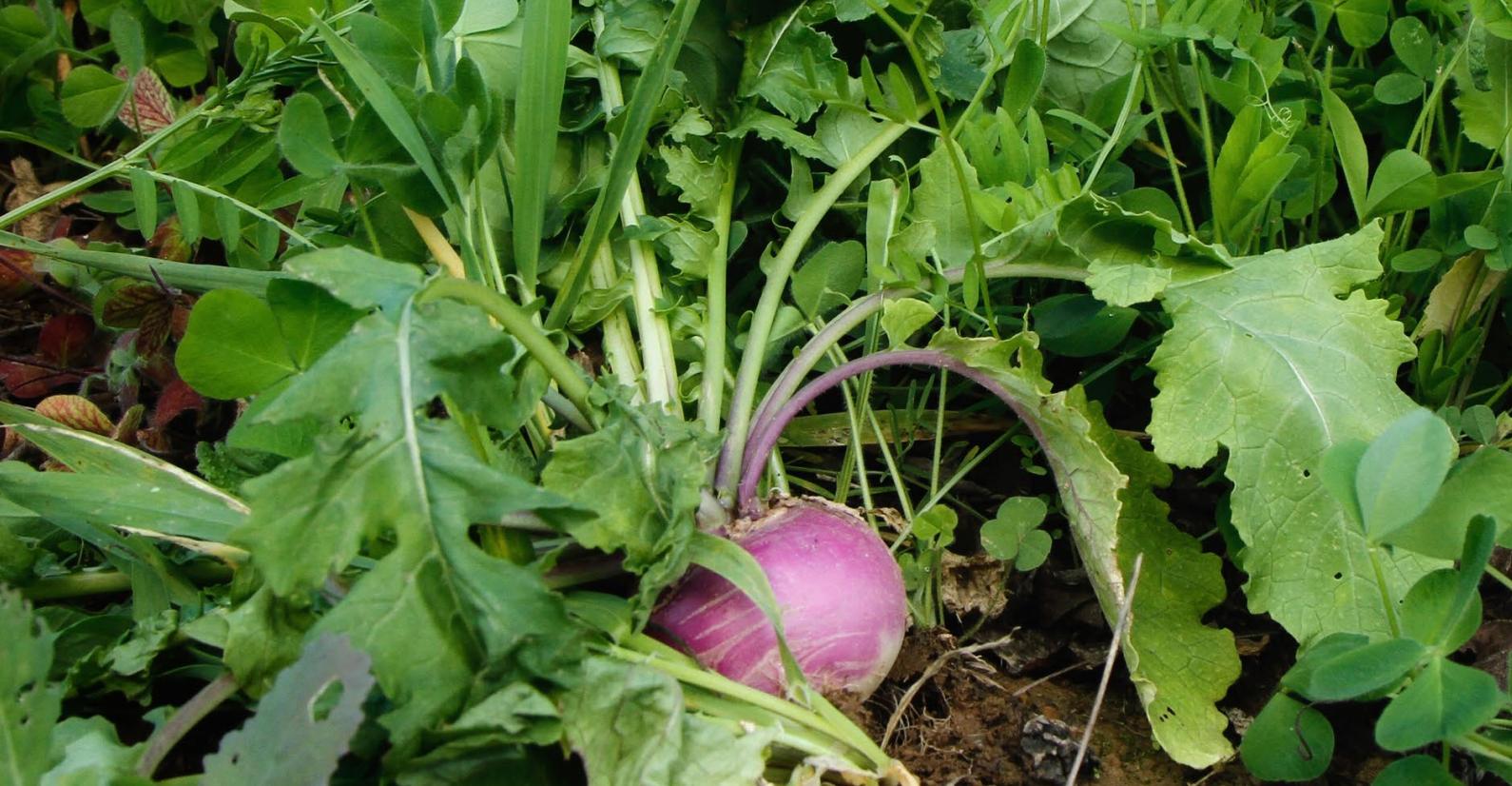 and energy? Many people are using this very economical means of wintering livestock now with great success. In the fall, you can add yet another forage crop, drilled right into the living stubble of the summer mix as soon as it is hayed or grazed off in late summer. At first glance, this seems to doom the new seedlings to certain failure, as they are competing with the regrowth of the established summer crop for moisture and light. But it doesn’t work that way. The transpiration of moisture from the regrowth of the summer crop cools the soil, dropping the temperature as much as 30 degrees relative to the air temperature. The cool-season seedlings need only 10% of the moisture at 80 degrees as they do at 100 degrees, so drilling a cool-season pasture mix of oats, triticale, rye, ryegrass, turnips, radishes and peas right into unkilled stubble of a summer annual mix can actually increase the survival of the seedlings. After a hard freeze has killed and thoroughly dried the summer plants, they can be grazed off right along with the green growth of the cool-season mix, saving on winter hay needs and providing much higher quality nutrition than hay. Besides, you also save the cost of termination! Best of all, the growing of crops in rapid succession provides those vital soil microbes a continual flow of nutritious root exudates for improving soil structure and water-holding capacity for better crops in the future.