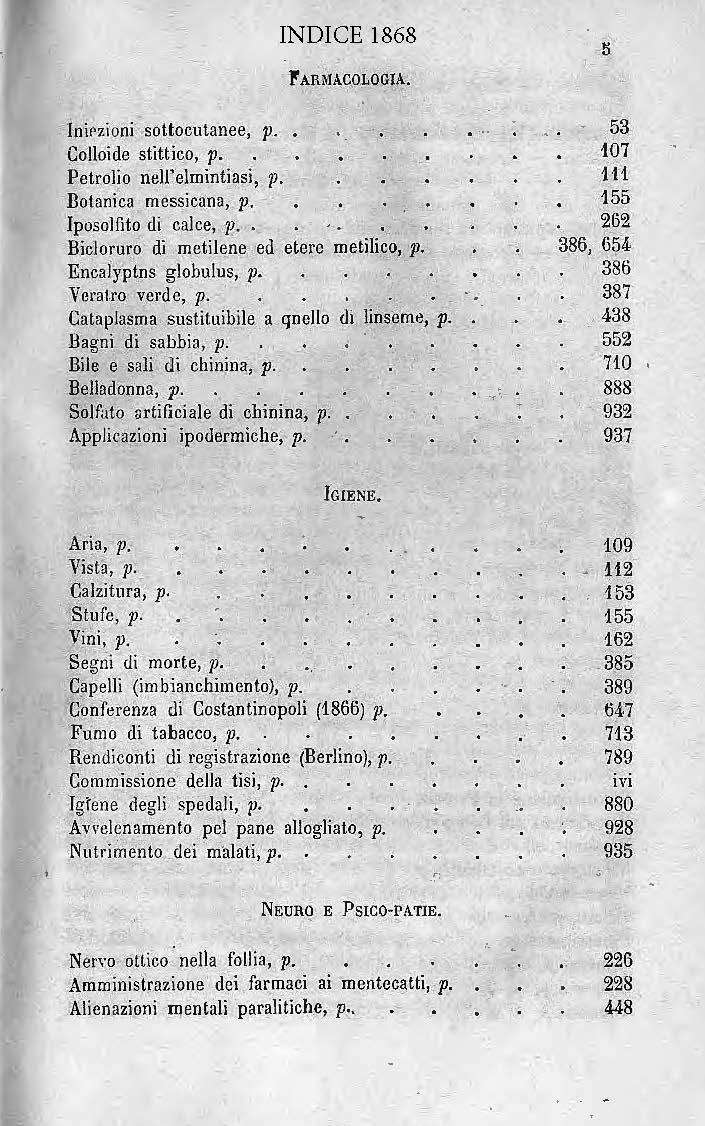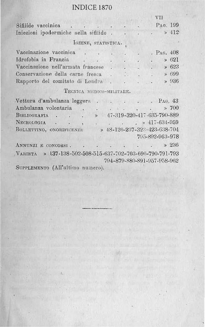 INDICE 1870 v 0l:I!UlCA1 FAR?.IACOLOGfA, 'l'OSSI COLOGJA, MEDICINA LEGALE