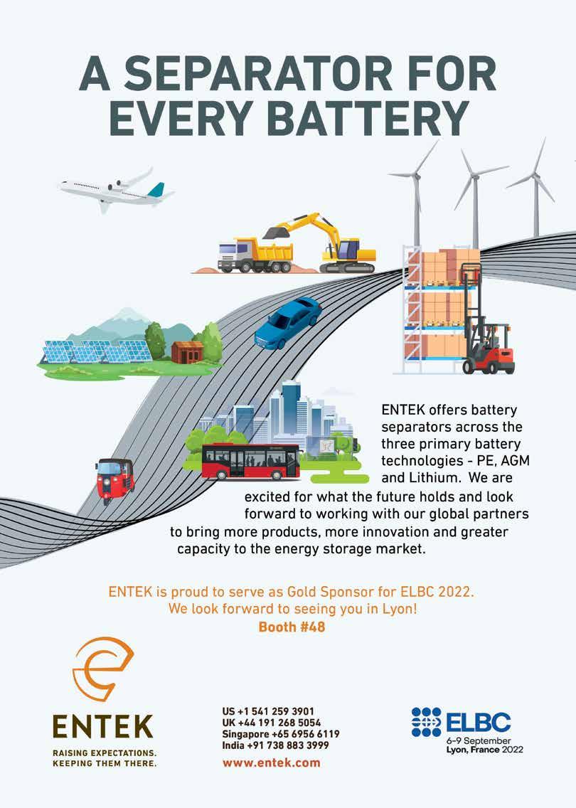 THE BATTERY STREET JOURNAL • ELBC 2022, LYON FRANCE • SEPTEMBER 6-9, 2022 PAGE 12 WWW.BATTERIESINTERNATIONAL.COM