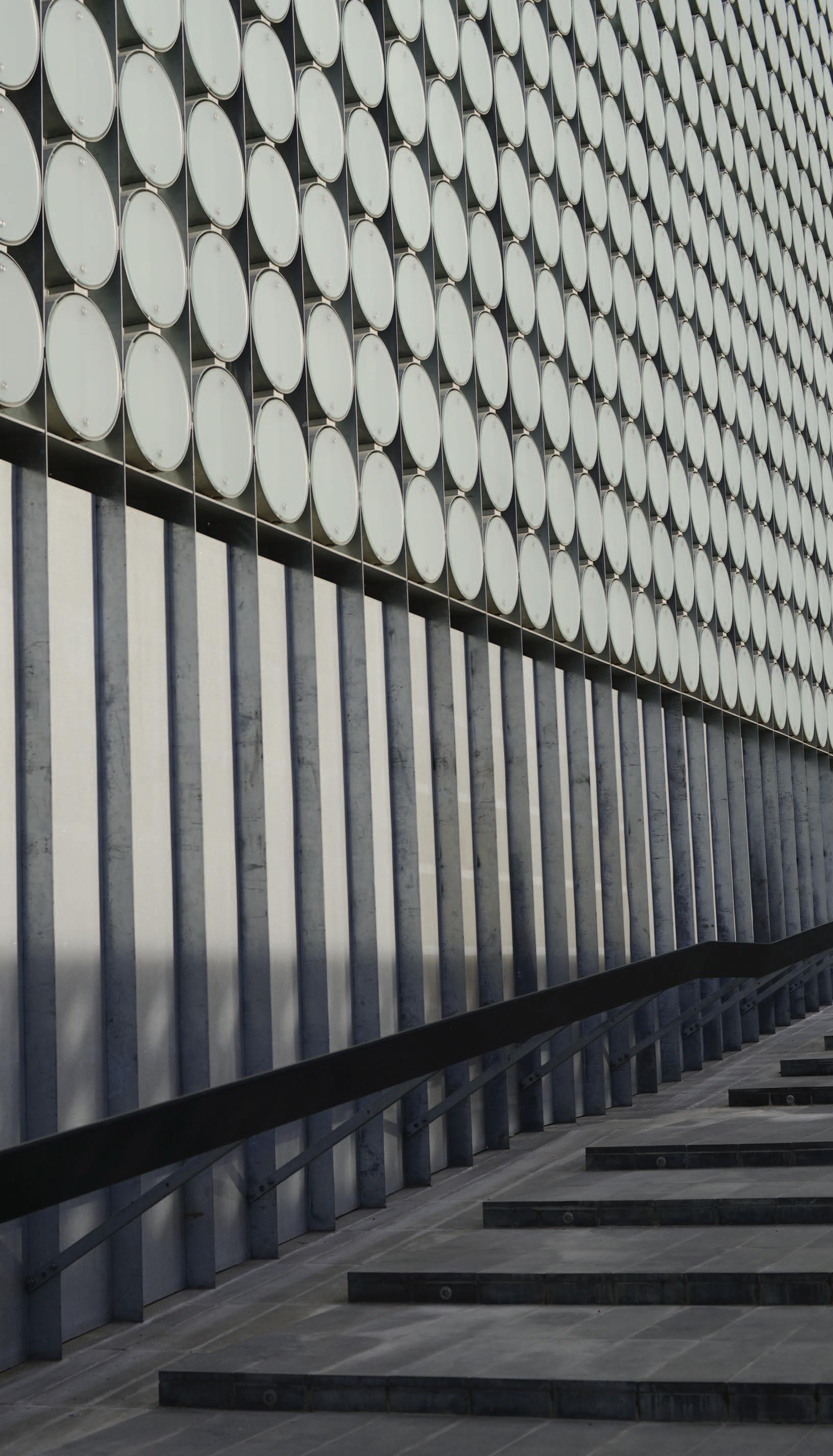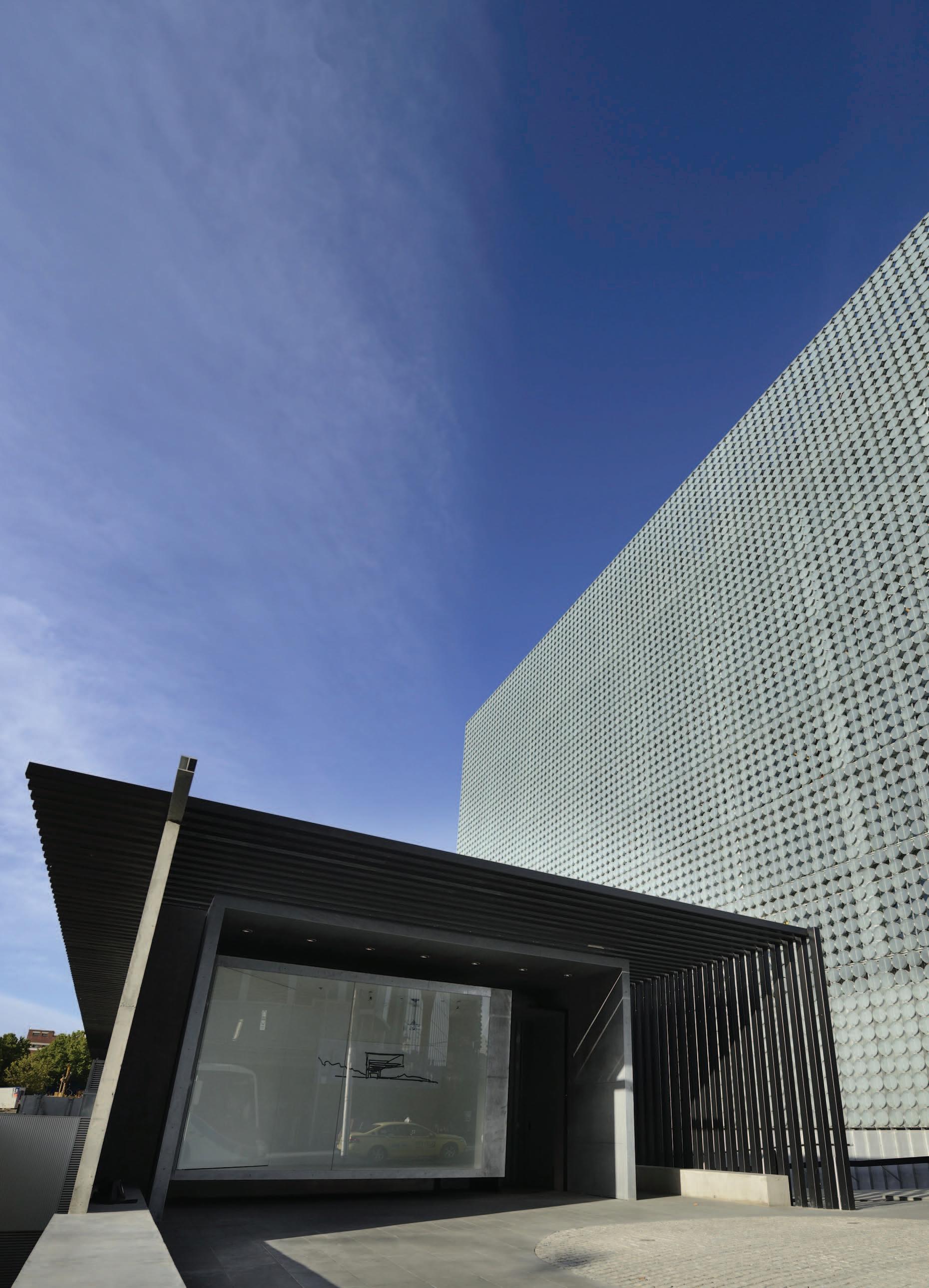Providing an environmentally sustainable collegial base for rmit’s postgraduate researchers in design, this new Design Hub is architecture in pursuit of beauty. A somewhat mechanical, poetically industrial façade veils architecture possessing a certain romance. This building, with its now much discussed translucent skin, has provoked an intensity of emotion and public reaction. Indeed there is much to find provocative – even beautiful. Forming a kind of jewel-like monument placed on the former Carlton & United Breweries (cub) site, one of Melbourne’s most desired city locations, the scheme comprises two buildings enclosing a central public forecourt. Ten storeys high, the Design Hub occupies the prominent Swanston and Victoria Street corner, while a smaller but no less impressive rmit Design Archives building is aligned to the Shrine of Remembrance and faces Victoria Street. From the exterior at least, this is architecture that relies on the power of an unyielding tenacious repetition.