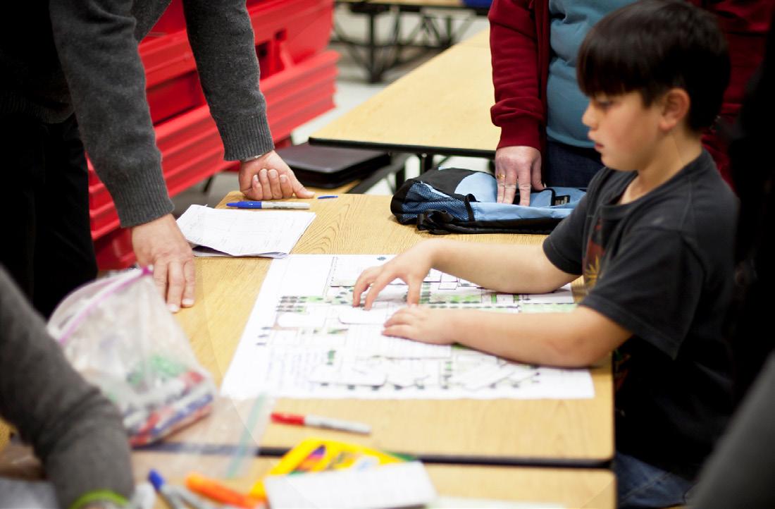 Wilson and Central were designed with the idea of flexible and adaptive teaching venues emphasizing project-based learning and collaboration. Outdoor teaching nooks, outdoor music space, outdoor maker space adjacent to the maker space classroom, and second level collaboration spaces were all incorporated with flexibility in mind. These learning nodes also help to organize the different age groups based on their needs. *CHPS Designed
