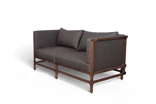 The CAPITAL family uses a successful combination of soft shapes and defined edges. A plump and comfortable piece available in a black or walnut finish, with stone or sand colored upholstery.