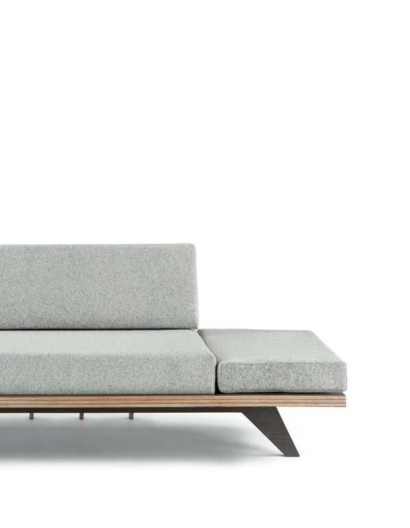 The SP is made from a series of modern, angled legs that attach to the base and continue up the back rest. It also has removable cushions on either side to create convenient side tables if needed. SP certainly has a unique and multifunctional design.