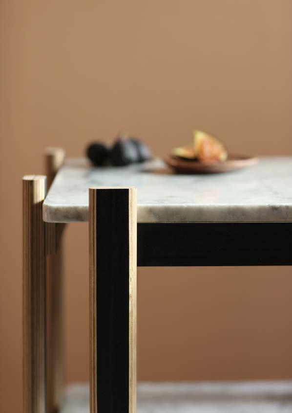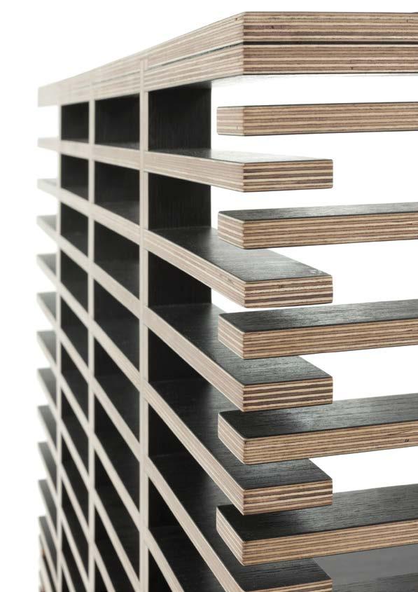 Materials Birch plywood and steel Finishes Black, walnut, gray