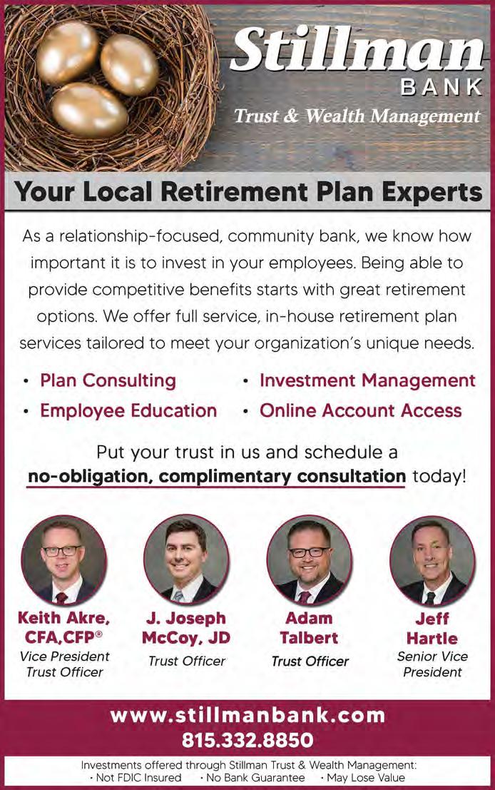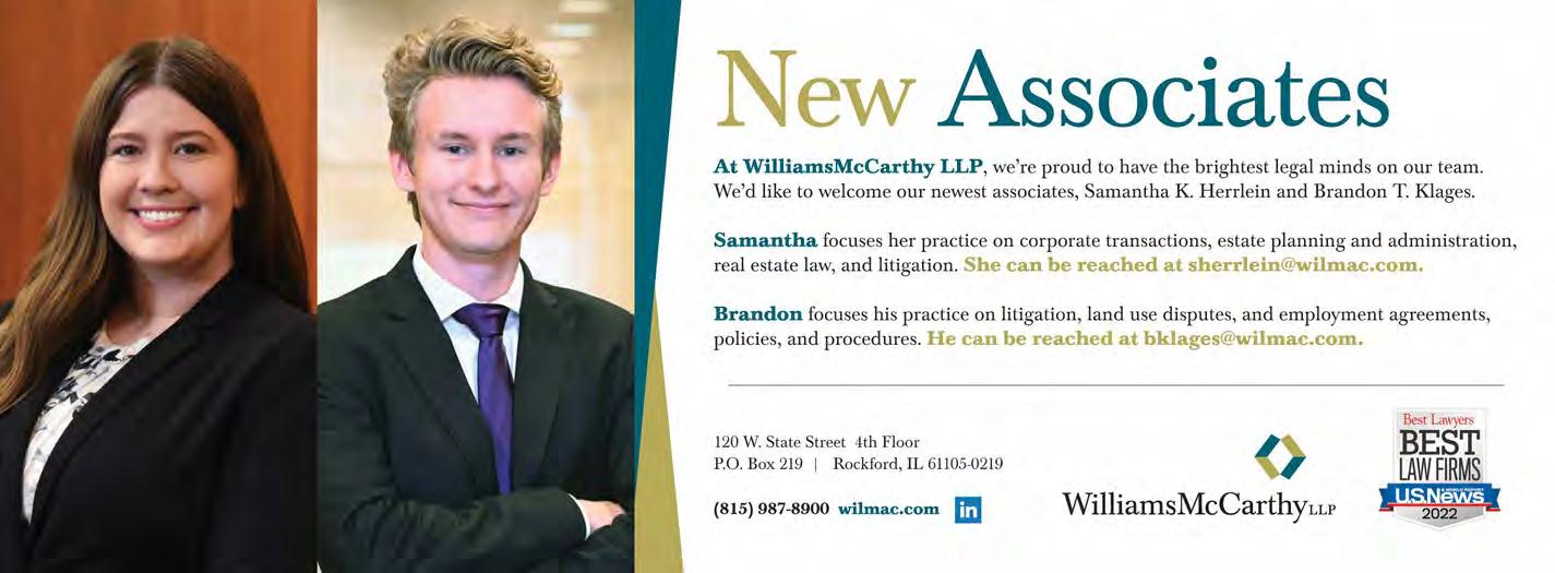 Chamber Staff / Call 815-987-8100 Direct Line Caitlin Pusateri, President 815-316-4337 Melissa Adams, Executive Assistant 815-316-4312 Susan Contrady, Account Executive 815-316-4317 Doug Hessong, Director of Publications & Technology 815-316-4338 Carmen Kellerman, Events Manager 815-316-4302 Kristin Muehlfelder, Member Relations 815-316-4315 Doug Rand, Accounting Manager/Controller 815-316-4316 Joan Sundvall, Membership Contact Coordinator 815-316-4320 Andrew Wright, Director of Strategic Initiatives 815-987-8100 VOICE the Illinois Bank and Trust 2 OSF Healthcare 3 Blackhward Bank ............... 4 LaLoggia Investment Group 4 Thayer Energy Solutions 5 Stillman Bank 5 Schmeling Constrution Co. 10 Riverview Inn & Suties 10 Rockford Community Bank 11 Saint CollegeAnthony of Nursing 12 Upper Iowa University 13 Workplace 15 WilliamsMcCarthy LLP 20 Rockford Rides ................ 21 National Public Radio 22 Pow(H)er 24 • The People Issue: Recruiting, Retaining, Celebrating Talent • Building Blocks of Business Success • Congratulations, Leadership Rockford Submit your article to editor@rockfordchamber.com by March 10, 2023 For information on advertising, call 815 316-4337 APRIL VOICE SPECIAL SECTIONS CHAMBER BOARD OF DIRECTORS & OFFICERS EXECUTIVE COMMITTEE Chair of the Board Jean Crosby Berkshire Hathaway HomeServices Crosby Starck Real Estate Immediate Past Chair Dan Ross Community Foundation of Northern Illinois Vice Chair Don Daniels Vice Chair Lesly Couper workplace Treasurer John Schuster JFS Services DIRECTORS Travis Andersen UW Health Northern Illinois Region Samuel J. Castree Staff Management, Inc. Alexis Wright Conniff Woodward, Inc. Doug Curry Stenstrom Construction Group Kelly Epperson Rosecrance Health Network Ira Grimmett Collins Aerospace Troy Haggestad WilliamsMcCarthy