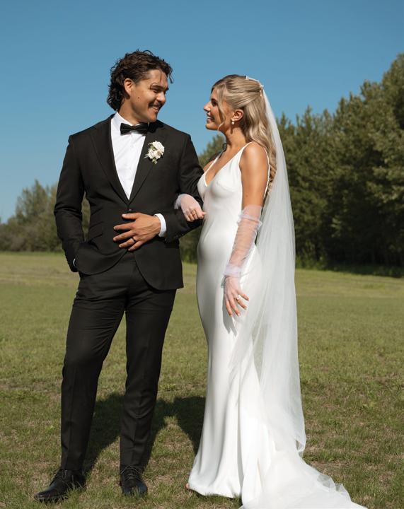 Before exchanging vows and celebrating with family and friends, there’s something special about stealing away for a quiet moment with your soon-to-be spouse. A round of golf at Cottonwood Golf & Country Club offers just that, an intimate, lighthearted way to unwind before the big day. Captured beautifully by Tess Lucas Photography, this editorial brings an elevated take on a golfinspired getaway, perfect for couples who want to blend leisure with romance. Styled with a nod to country club elegance, the bride wore a chic all-white look from HALARA, blending sportiness with sophistication. The groom’s refined yet relaxed attire from Adidas and lululemon complemented the setting as the couple moved from playful swings on the green to quiet, affectionate moments.