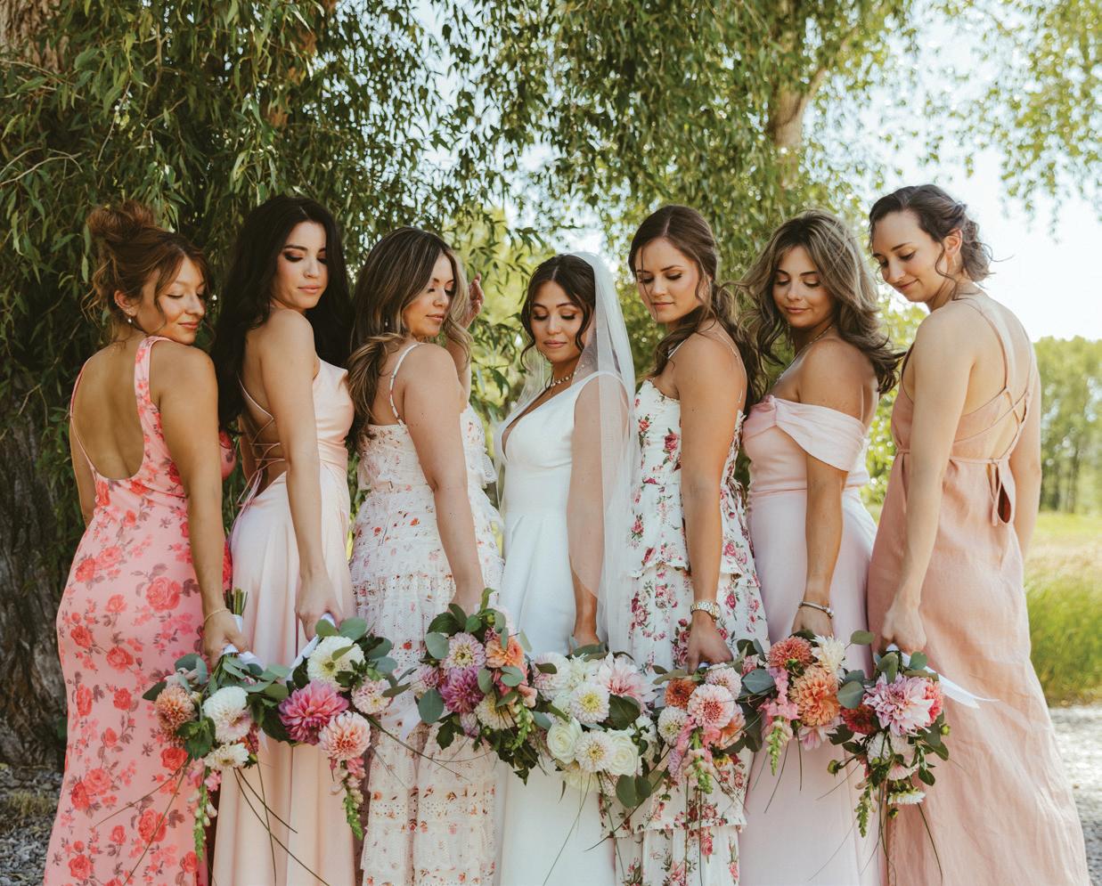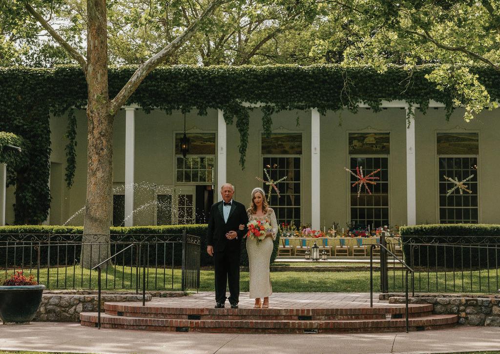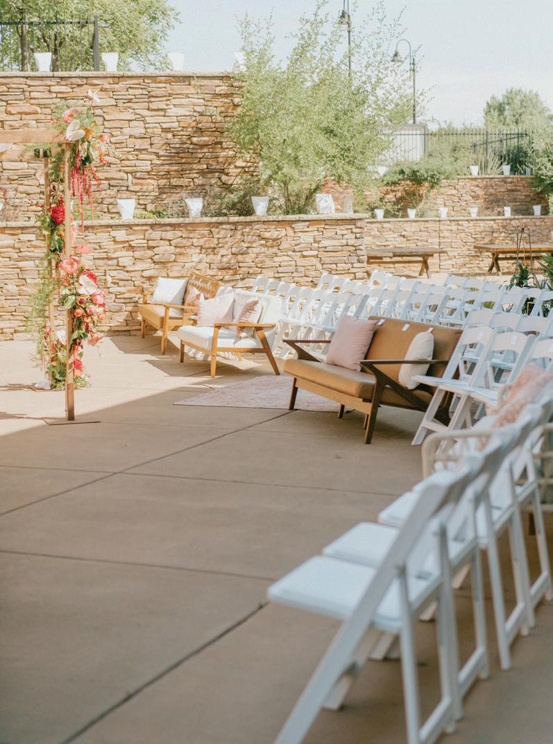 courtney & chance hosted a garden-inspired wedding on a warm August evening in Albuquerque. With many guests traveling in from out of town, they wanted to showcase the best of their home state and knew that summer’s golden light and bold landscapes would provide the perfect setting. The National Hispanic Cultural Center, with its striking architecture and spacious layout, offered an ideal flow for their 230-person wedding, from a tree-lined ceremony to dinner beneath a tented canopy and dancing under the stars. A vibrant palette of bright pastels and whimsical florals by Floriography brought a fresh energy to the desert surroundings, while thoughtful fashion choices, including a breezy tulle gown for Courtney and a lightweight suit for Chance, kept things stylish and comfortable in the heat. One of their favorite memories? Stealing a quiet moment together after the ceremony to soak it all in. For couples planning a summer wedding in New Mexico, they recommend having a weather backup in place, just in case a quick summer sprinkle rolls in.