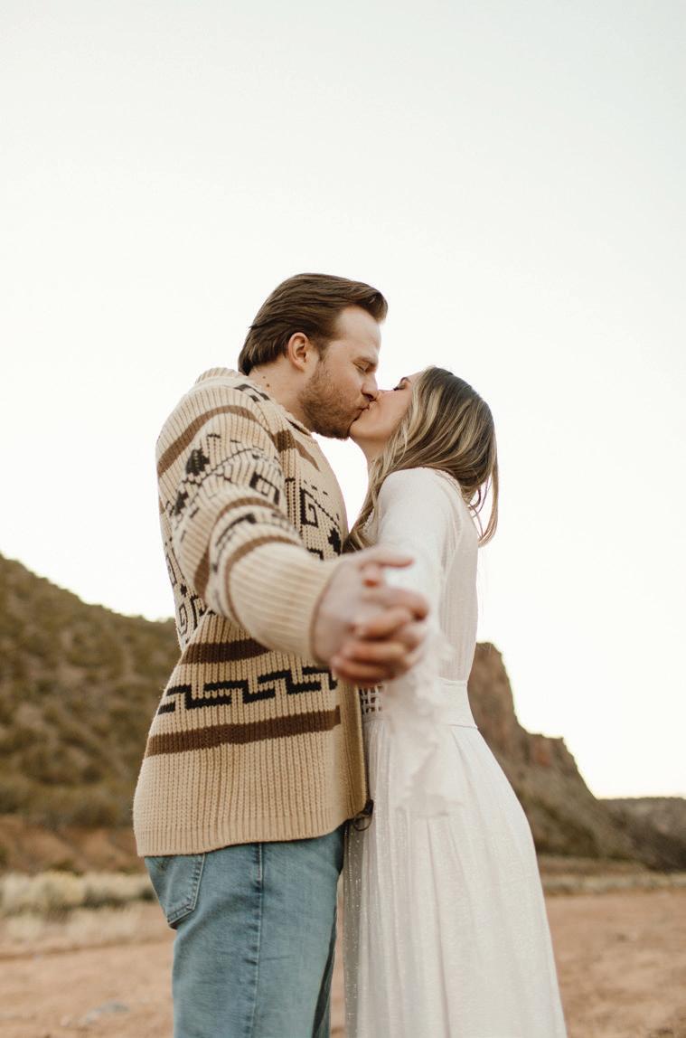 Although Celeste and Tanner grew up just 45 minutes apart in southern New Mexico, they wouldn’t end up meeting until college at New Mexico Tech. The two first developed a friendship before they found themselves working side by side in the same engineering office at Los Alamos National Labs. It was during this time together that their friendship evolved into something much more meaningful. After a year of dating, Tanner planned a hike to McCauley Hot Springs in the Jemez National Forest, one of the couple’s favorite ways to spend time together. After two miles of forest trail, they arrived at a secluded, bright blue spring where they settled into the warmth and shared a deeply emotional conversation about their future. “As our hearts opened fully to one another, Tanner gently held me close and quietly asked me to be his wife,” Celeste shared. “Without hesitation, I said ‘Yes,’ forever marking where our next chapter began.”