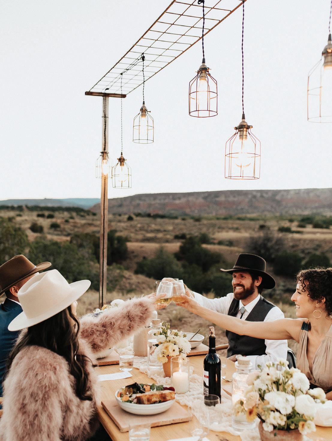 Autumn in New Mexico was made for weddings. The weather is mild, the sunsets are rich with color and the surrounding landscapes shift into a palette of deep reds, golds and rust tones. It’s no surprise that fall is one of the most popular seasons to tie the knot here, which means couples should plan early to secure their dream vendors and venue. Cooler evenings can be cozy with the addition of blankets, firepits or warm signature cocktails. Clear-top tents become an option again as the temperatures drop, and heaters ensure guests stay comfortable well into the night. While rare, snow can make a surprise appearance as early as October, so checking the forecast and having a weather plan will keep your day stress-free. For couples dreaming of a romantic, colorful celebration, fall in New Mexico is tough to beat. band kept the party going well into the night.