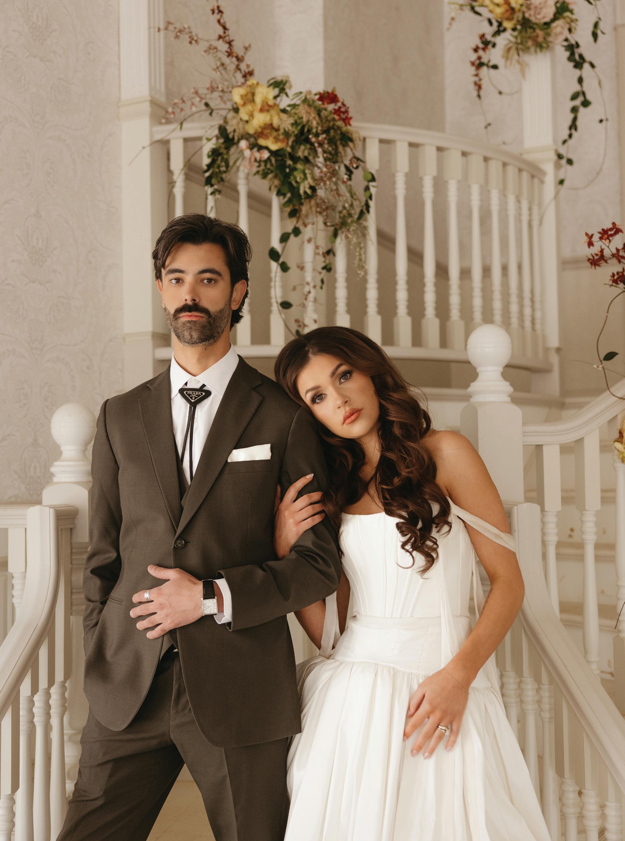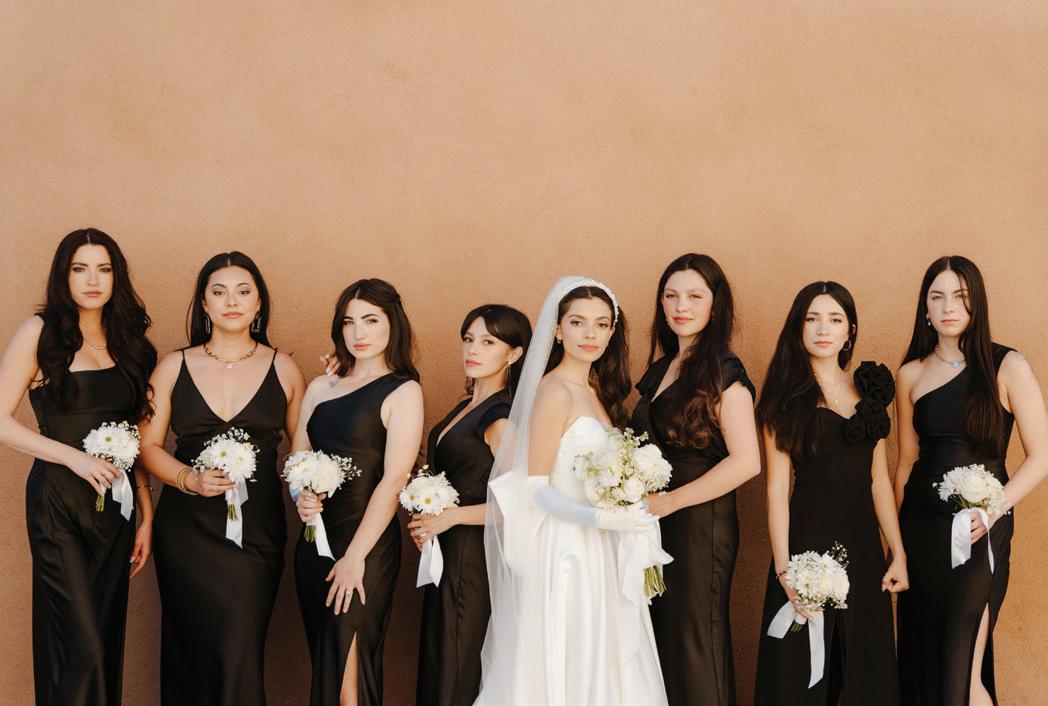 Set against the sun-soaked backdrop of Mortenson’s Eaves Movie Ranch in Santa Fe, this styled shoot set out to redefine Western chic. With planning and design by Sunny Side Events, the vision was all about blending “rustic elegance with modern luxury” in a way that felt both elevated and deeply rooted in Southwestern charm. “Every detail, from the structured bridal gown to the refined yet rugged floral arrangements, reflects a seamless fusion of timeless Western influences and contemporary design,” the planner shared.