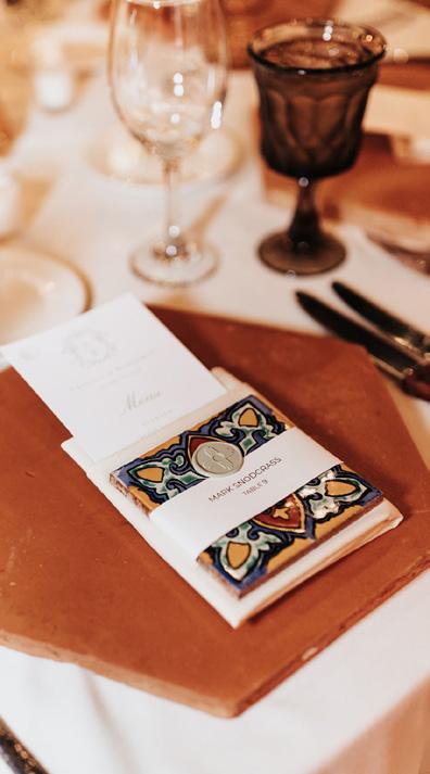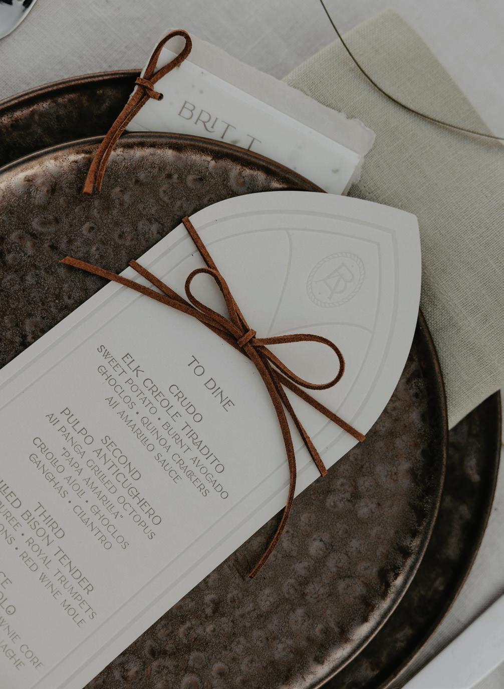 The invitation suite, designed by Skelley West Design Co + Letterpress, set the tone for the celebration with custom pieces that nodded to the location and overall aesthetic. As the first impression guests receive, the stationery offered a visual preview of the day; organic, bold and refined with just the right amount of edge.