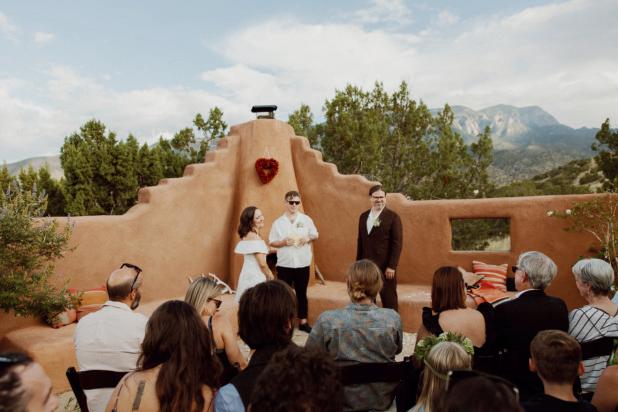 Venue, Catering & Beverage: Los Poblanos Historic Inn & Organic Farm | lospoblanos.com, Planning & Florals: A Beautiful Theme abeautifultheme.com, Videographer: Bryce Thomas Films | @brycethomasmedia, Guitarist: Ronaldo Baca | ronaldobaca.com, DJ: Complete Weddings + Events | completewedo.com/albuquerque, Grooms’ Attire: Bespoke Edge | bespokeedge.com, Rings: Balefire Goods | balefiregoods.com + Chris Ploof Designs | chrisploof.com, Shoes: Christian Louboutin | us.christianlouboutin.com, Hair & Grooming: Prisma Hair Co. | prismahairco.com