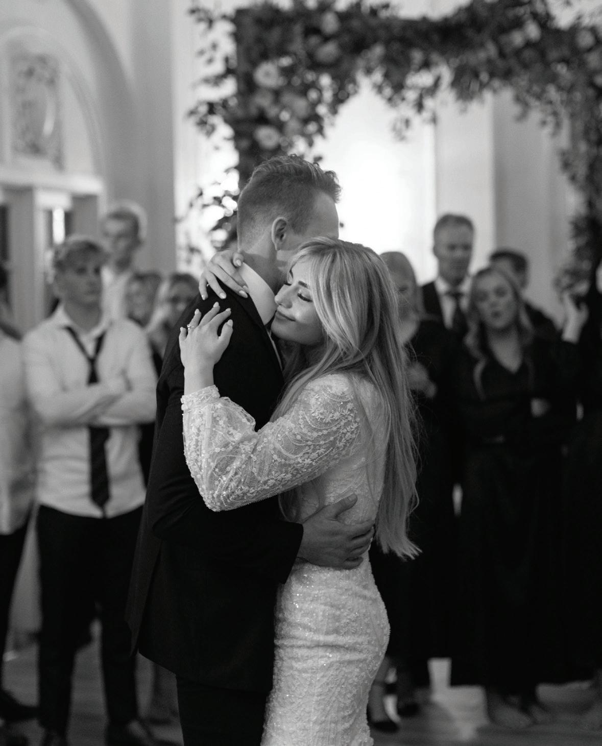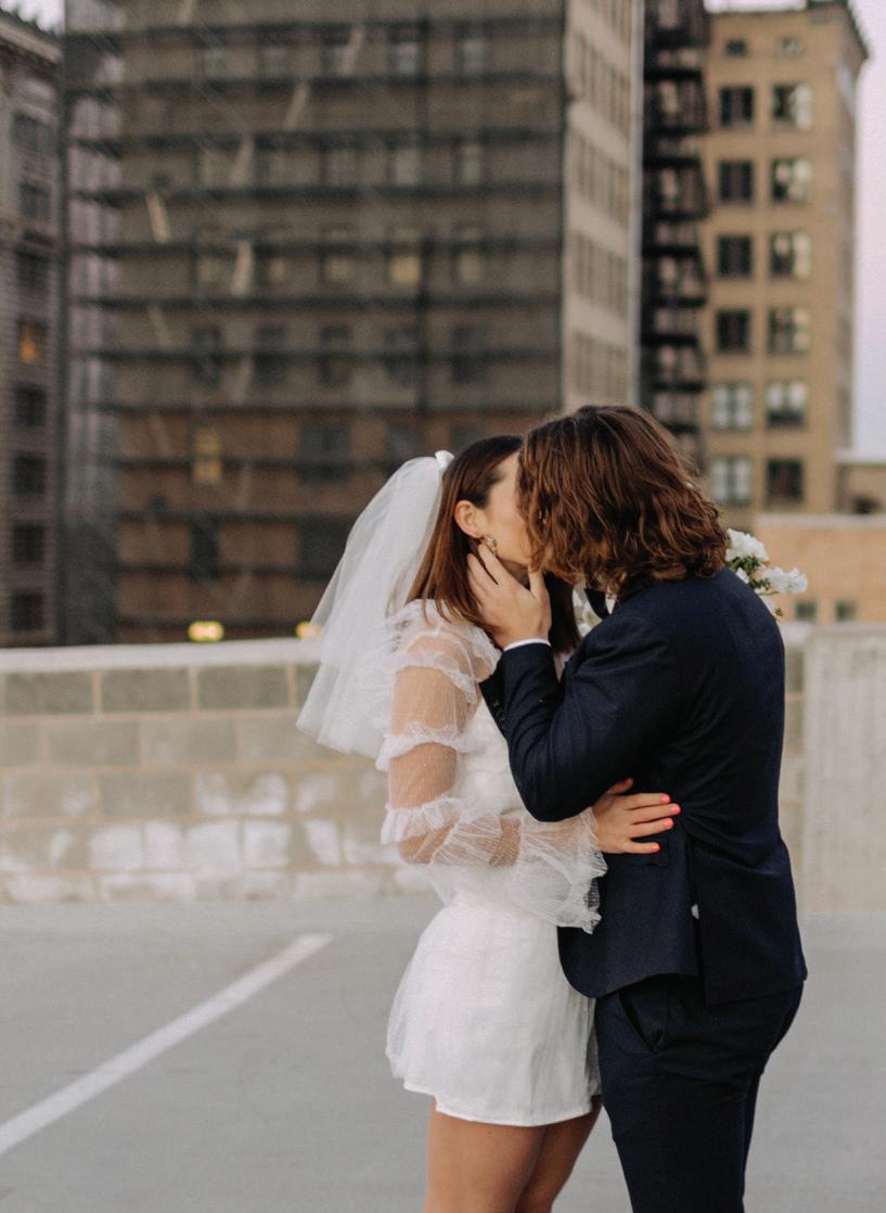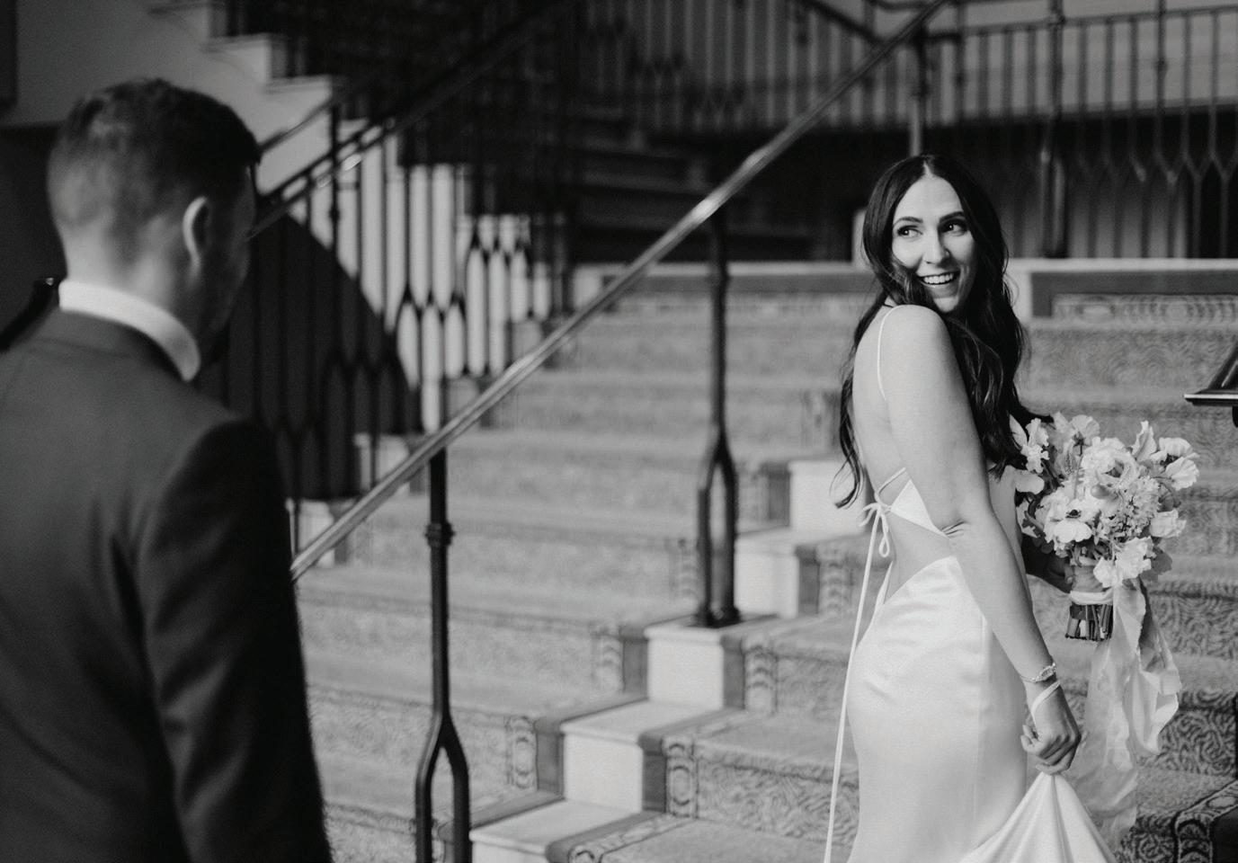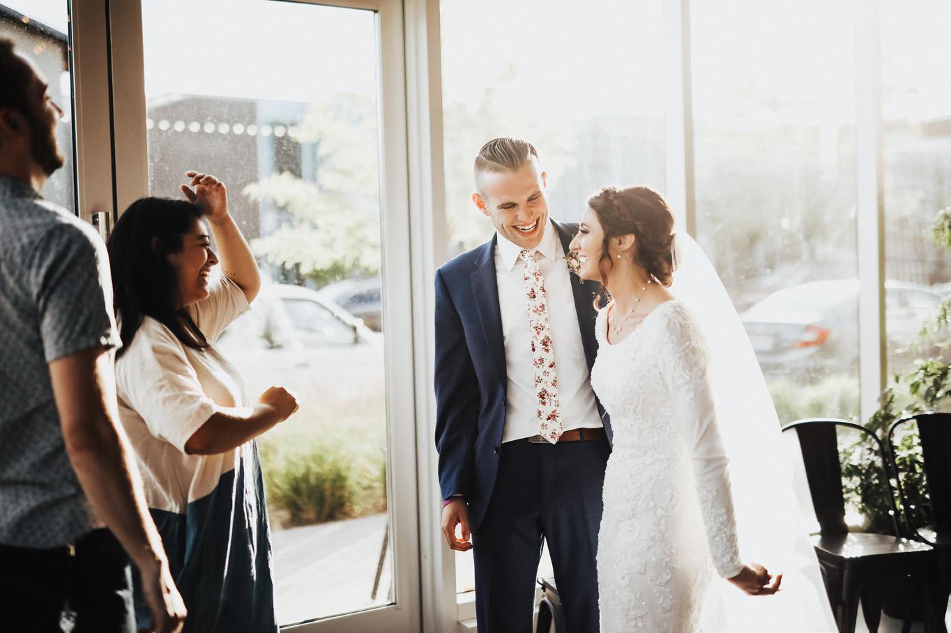 Sarah was enrolled in esthetician school where she met Stephen’s cousin, Sophie. The girls quickly became friends and soon enough Sophie was playing matchmaker. “She always told me she had the cutest cousin and she wanted to introduce me to him,” Sarah explains. One day, Sarah received a call from Stephen asking her for a date, like a proper gentleman, we might add. That September, after a dinner in downtown Salt Lake City, the couple took a romantic drive through a canyon. It wasn’t long before Stephen pulled off to the side of the road and suggested walking to the view of the valley, the lake, and the sunset over the mountains. With a golden haze setting, Stephen proposed to Sarah. The bride and groom planned a chic winter wedding in the city.