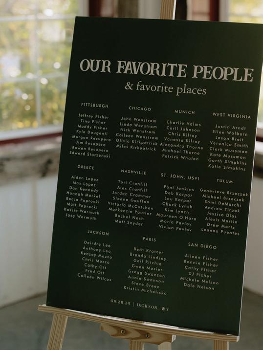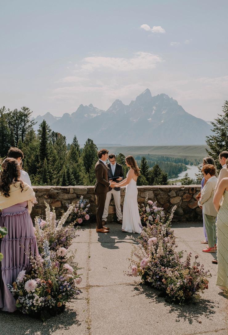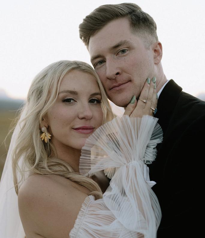 There’s something about Wyoming that grabs hold of your spirit, wide open skies, rugged mountain peaks and a pace that makes you breathe a little deeper. Though I don’t call it home, every visit feels like coming back to a place I was always meant to find. Curating this issue has been a love letter to that feeling - to the wild, beautiful energy that makes Wyoming weddings truly unforgettable. From the snowcovered peaks of Jackson to the quiet charm of Sheridan and the sweeping views above Snow King Mountain, this issue is packed with real weddings that embrace the West in all its forms. Whether it’s a star-lit elopement in the Grand Tetons or a windswept ceremony in Afton, each celebration reflects the character of the land and the couples who bring it to life.