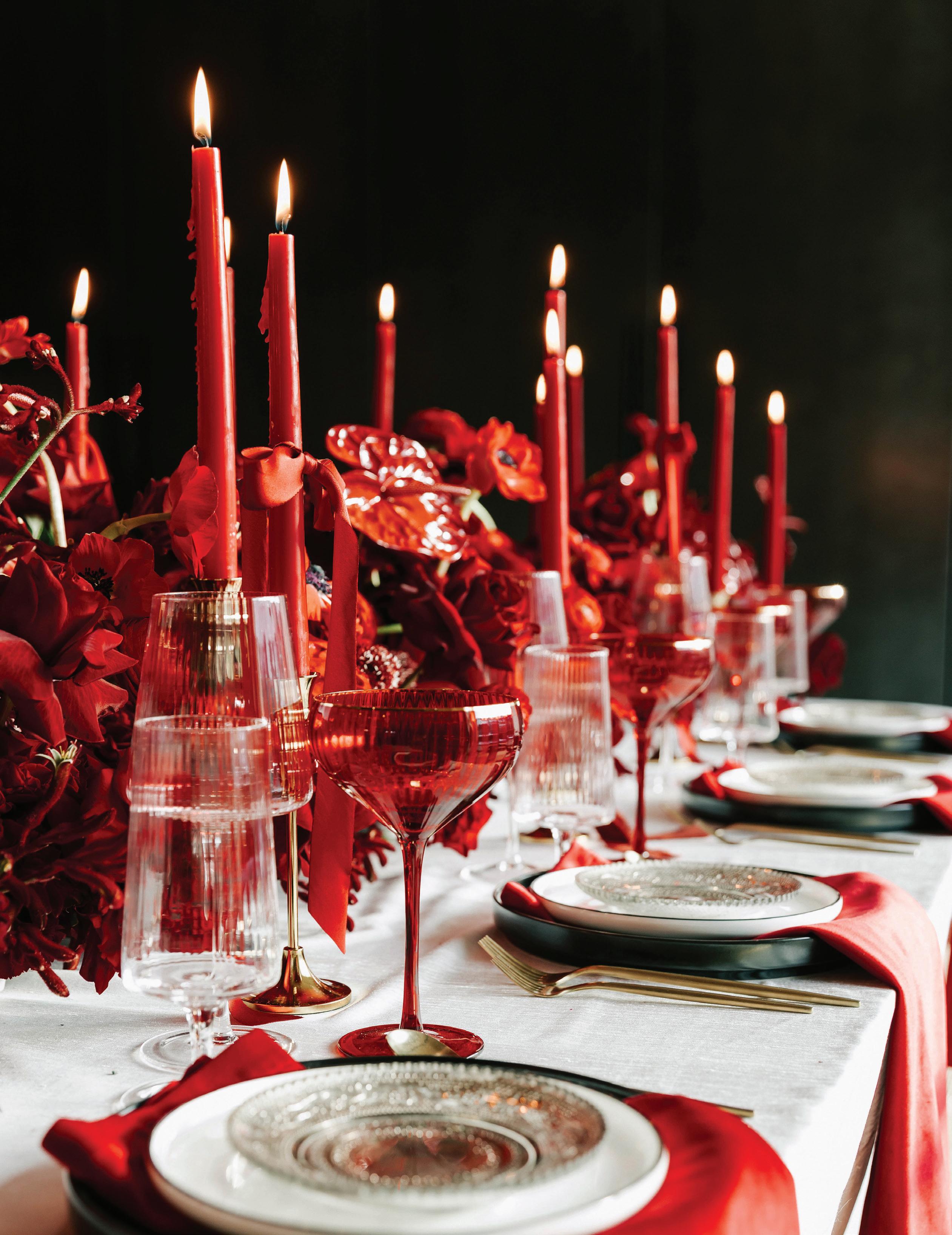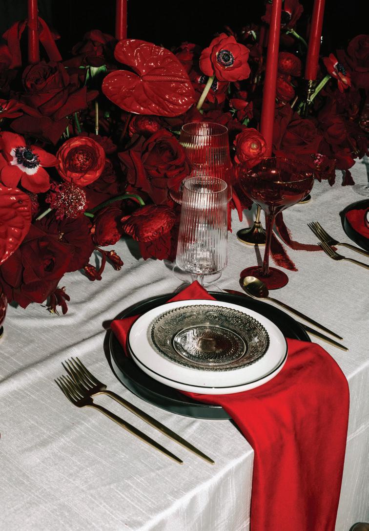 Dinner was an ultra-chic affair with a jaw-dropping tablescape dressed in scarlet blooms, layered candlelight and modern place settings from Table Manners. A dramatic seating chart banner welcomed guests to an intimate setting where vibrant red blooms by Plush Floral stole the show. With Michelinworthy catering and a seasonal menu crafted by Caldera House, this was après done right; flirty, fiery and unforgettable.