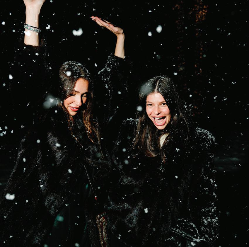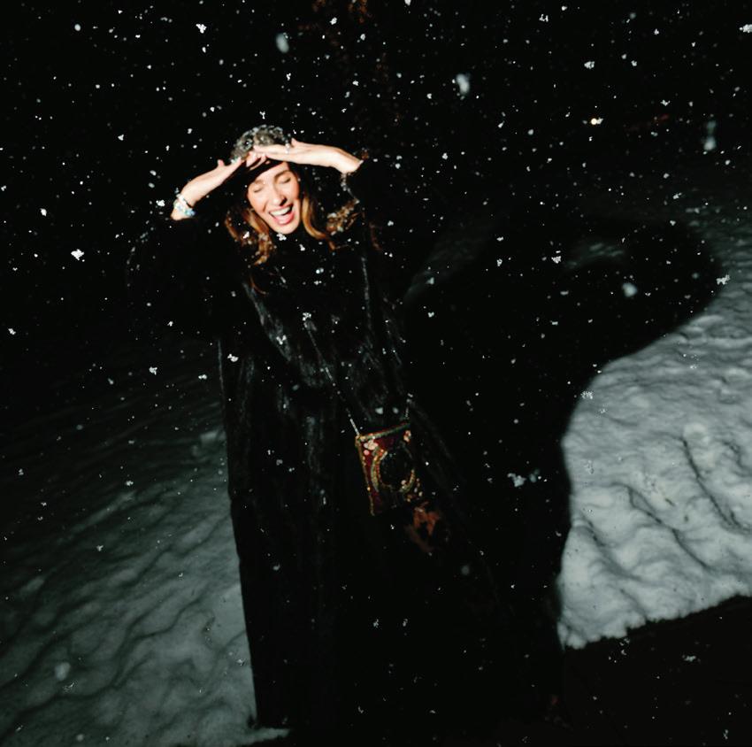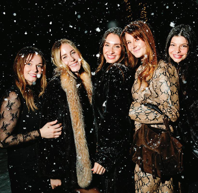 The night’s theme; animal print and glamour. Eve wore a stunning green Rodarte dress styled with heirloom pieces from her late Nana and fine jewelry from her own brand, Stoned Fine Jewelry, where she’s also the CEO and founder. Her friends bundled up in vintage fur coats she had thrifted for the occasion, making for a fashion-forward crew twirling through snowflakes under the Jackson sky.