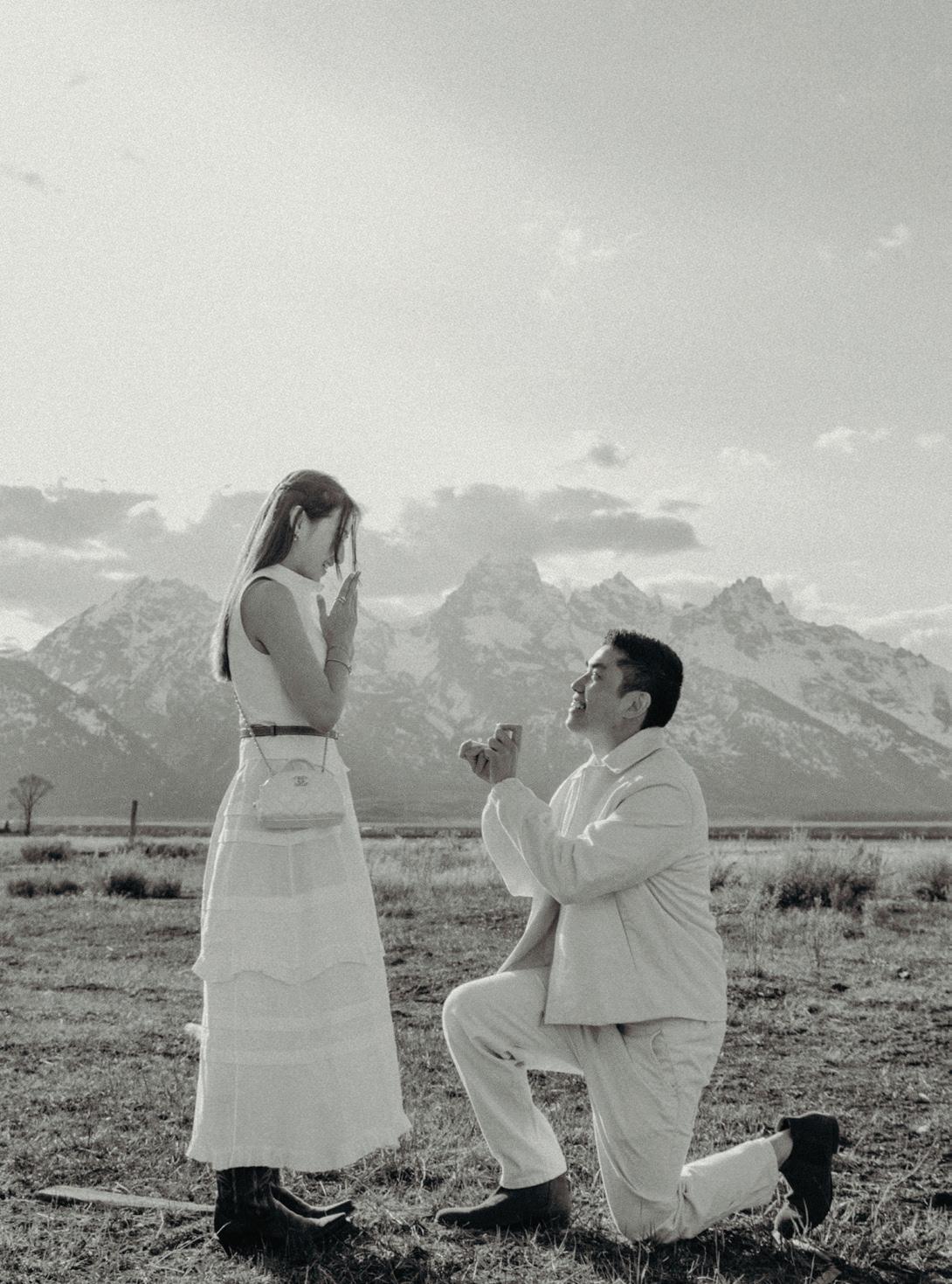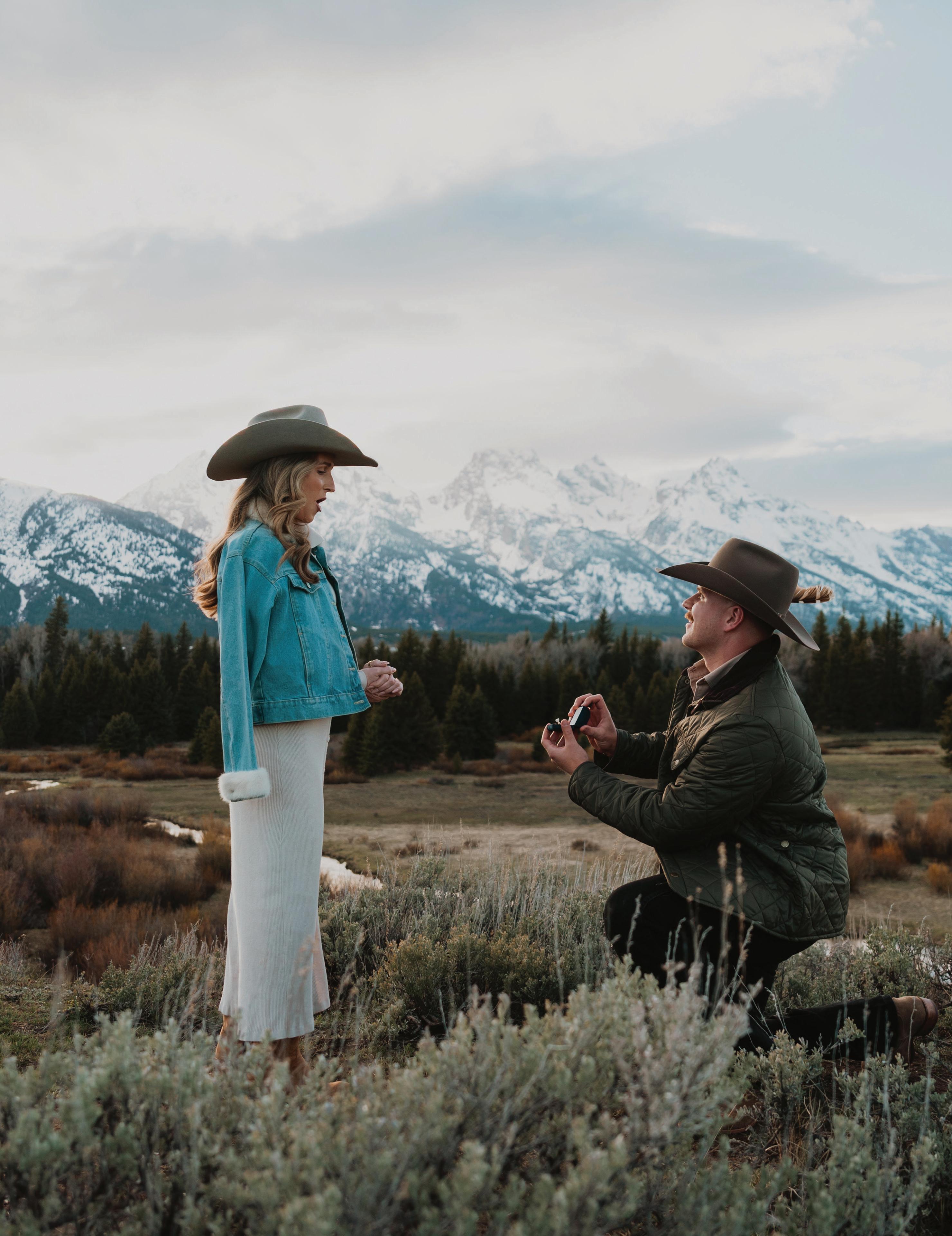 Courtney and Nick first met at Texas Tech University. After five years of dating, Nick planned a heartfelt proposal in the picturesque town of Cody with views of the Absaroka Mountain Range. Secretly orchestrating the moment with photographer Macy Spencer, Nick asked Courtney to take some casual photos, unaware she was about to receive the surprise of a lifetime. As the breathtaking Wyoming backdrop surrounded them, Nick got down on one knee, and Macy captured every moment of their unforgettable proposal.