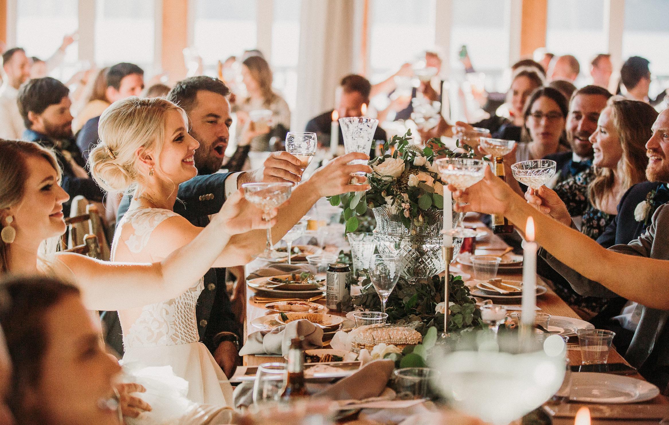 To end the night? A vintage-inspired white cake topped with cherries, celebratory toasts in sculptural glassware and the indulgence of settling in for a snowy minimoon. From morning spa appointments to stargazing and sleigh rides, Caldera House invites couples to turn their wedding day into a full-fledged alpine escape.