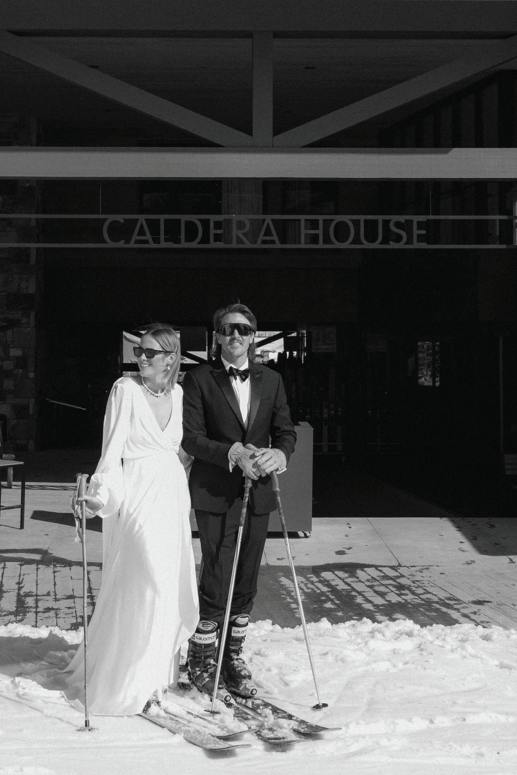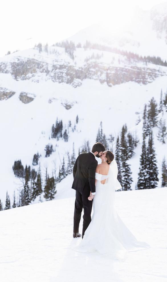 Caldera House served as the ultimate alpine venue, offering both exclusivity and adventure in the heart of Teton Village. The couple donned formalwear with ski boots and hit the slopes for an unforgettable elopement moment, gliding straight from “I do” into après-ski bliss. With full suites for the wedding party, ski-in/ski-out access and intimate spaces for up to 50 guests, Caldera House effortlessly blends rugged charm with elevated hospitality. In recent years, ski elopements and adventureforward weddings have become increasingly popular, offering couples a way to celebrate their love story on their terms while still creating meaningful moments with guests. At Caldera House, the magic lies in the seamless blend of intimacy and activity. Guests can bundle up and cheer from the base, join the couple for a mountaintop toast or even ski alongside them for a once-in-a-lifetime memory. It’s a new kind of luxury! One where celebration meets adrenaline, and the line between ceremony and experience beautifully blurs.