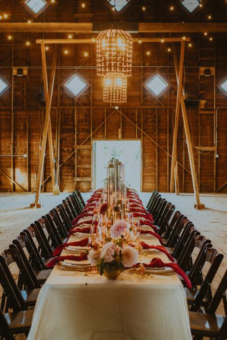 To showcase the bold side of Jackson Hole winter weddings, planner Latham Stevens teamed up with photographer Adrian Wayment to create a striking editorial full of contrast, texture and edge. The goal? To inspire couples seeking a luxurious, fashion-forward take on winter romance. A modern and moody palette of red, gold, black and earthy neutrals set the tone for a snow-dusted love story.