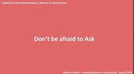 The success of this inaugural webinar sets the tone for future discussions, as the Lighthouse Club Manila Branch continues to champion initiatives aimed at breaking down barriers and advancing the role of women in construction.
