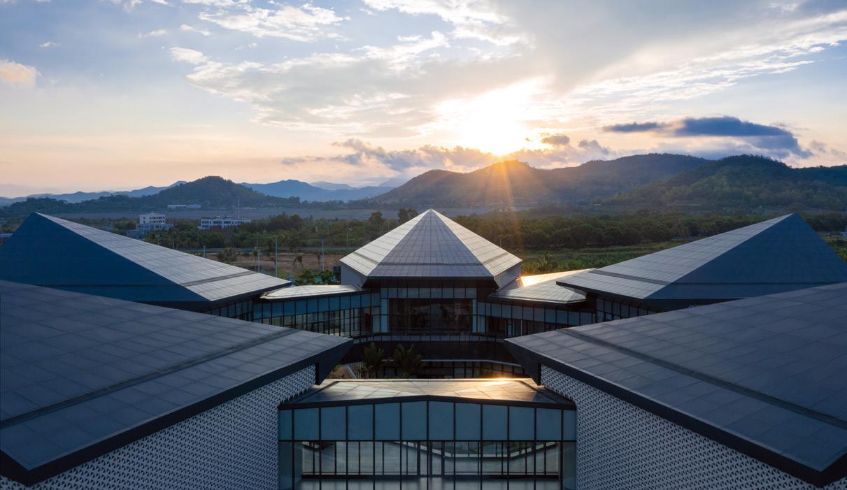 As an important gateway to the Deep Sea Science and Technology City of Sanya, Hainan province, the Sanya Yazhou Bay Science and Technology City Industry Promotion Center incorporates a unique arrival experience with an authentic vernacular design. Five major volumes featuring pitched roofs are connected through elevated corridor bridges, creating a spacious courtyard with minimal impact on the ground plane.The vicinity is filled with indigenous plants embedding the building in a lush garden. The mild and warm climate of Sanya creates an opportunity for natural ventilation, the project manages to reduce the cooling loads by utilising this feature; openings on the pitched roofs allow free flow of air. Aluminium façade panels feature a hollowed-out pattern, creating dynamic lighting inside the building, whilst providing sufficient shading for the adjacent spaces. The glass walls behind the façade, open to make the whole building fully permeable, further reducing operational carbon footprint. Gensler Design Director, Hasan Syed, said: “We wanted to design a building that was truly immersed in nature and would become an extension of it.” www.gensler.com