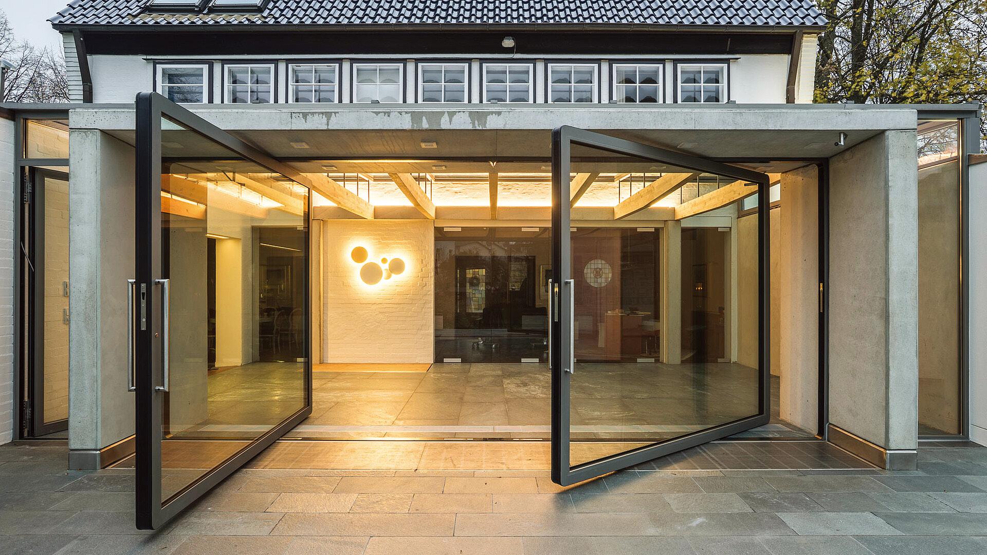 The patented air-assisted sealing system from air-lux has been adapted to create this stunning Pivot Doors. A set of two air-lux pneumatic seals run all around the moving panels to make the pivot door 100% impermeable to driving rain, air infiltration and provide a significant noise reduction.
