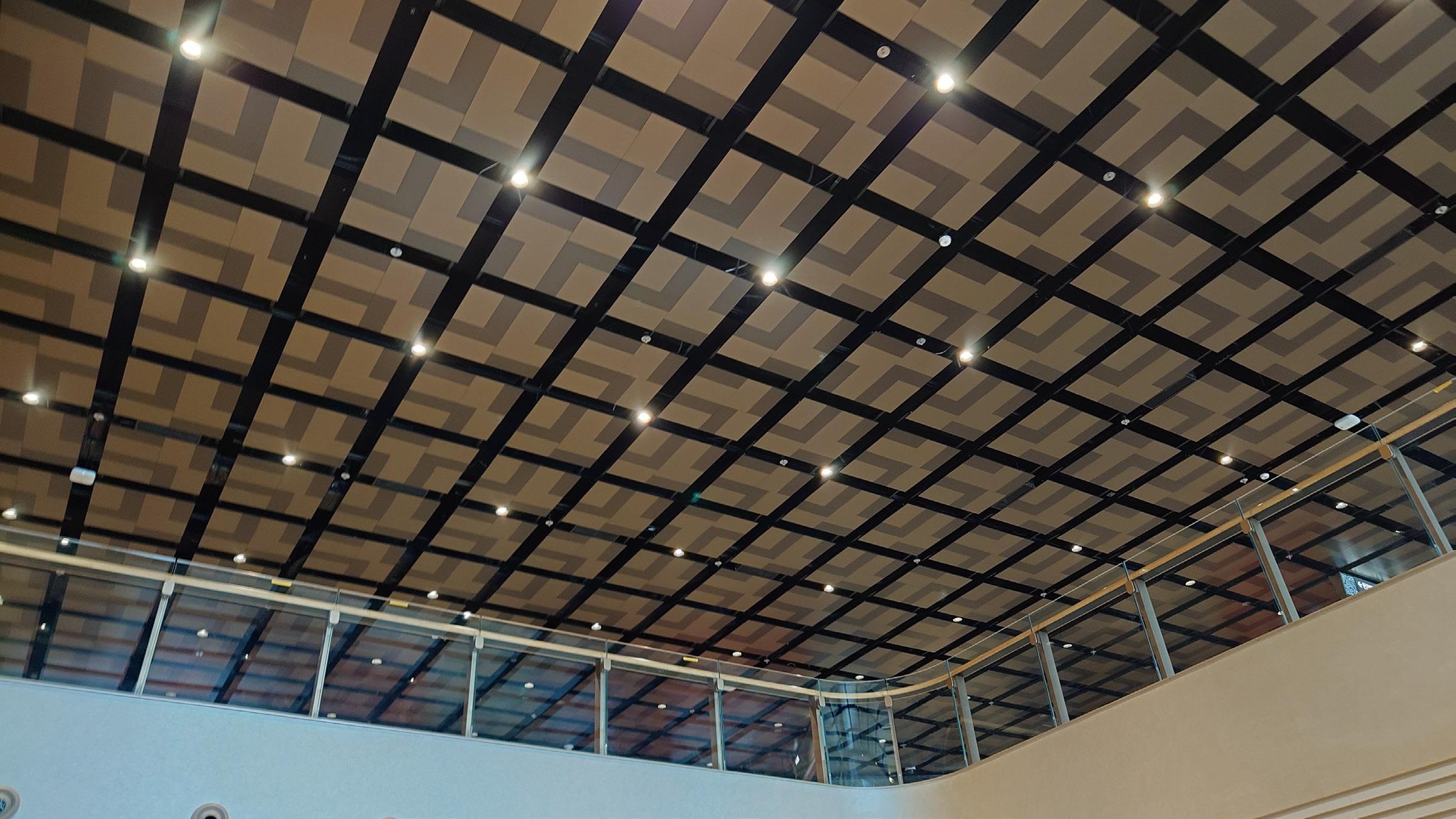 Incorporating the NEST design concept to the interior provides a consistent feel and connection with the woven building exterior. In the entrance lounge, a threedimensional weave of the walls and floors creates a beautiful space that sculpts the atrium into a passage that guides visitors inside.