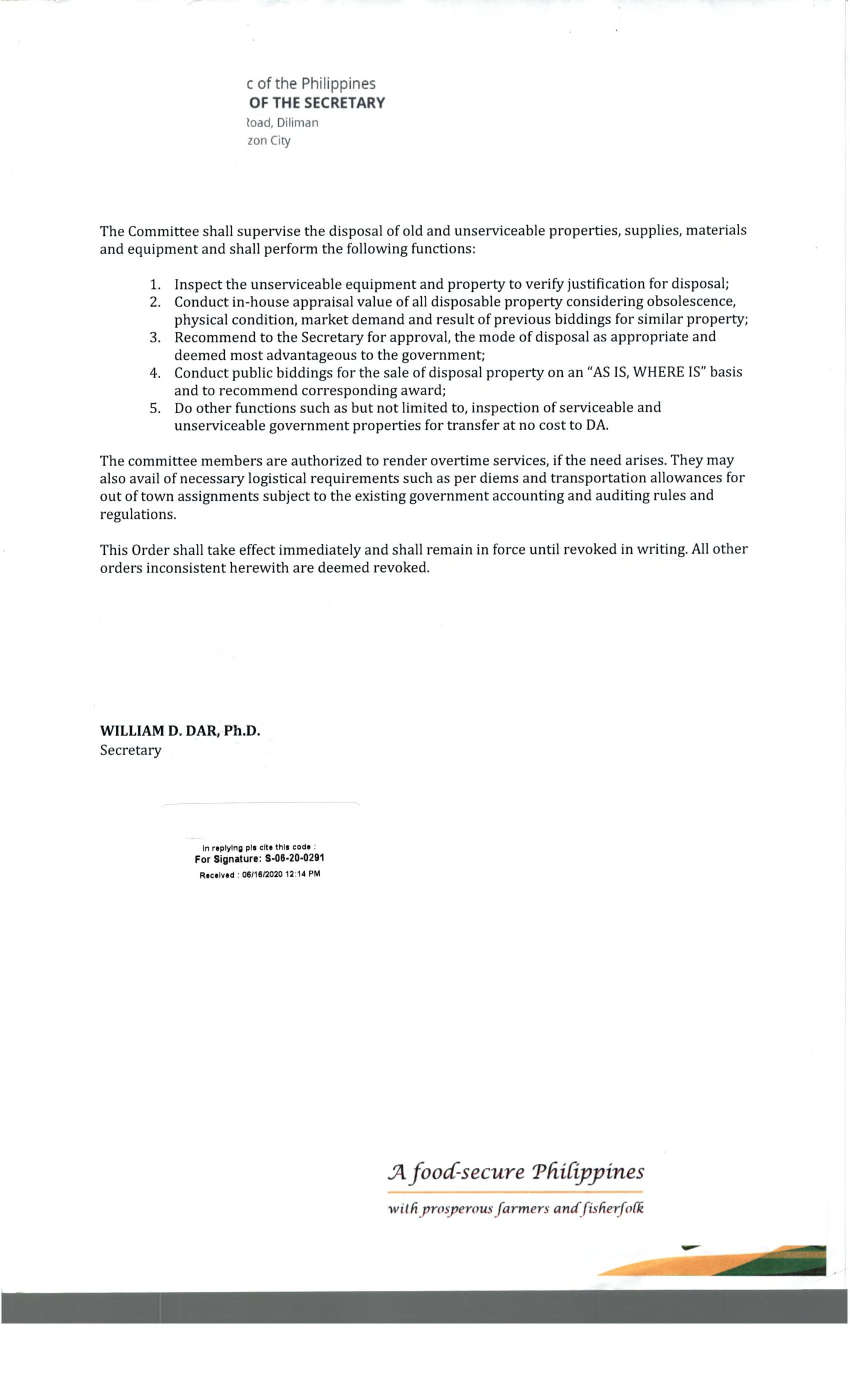 SO#535,s.2020_Reconstitution of DA Assets Disposal Committee and TWG by roldangorgonio - Issuu