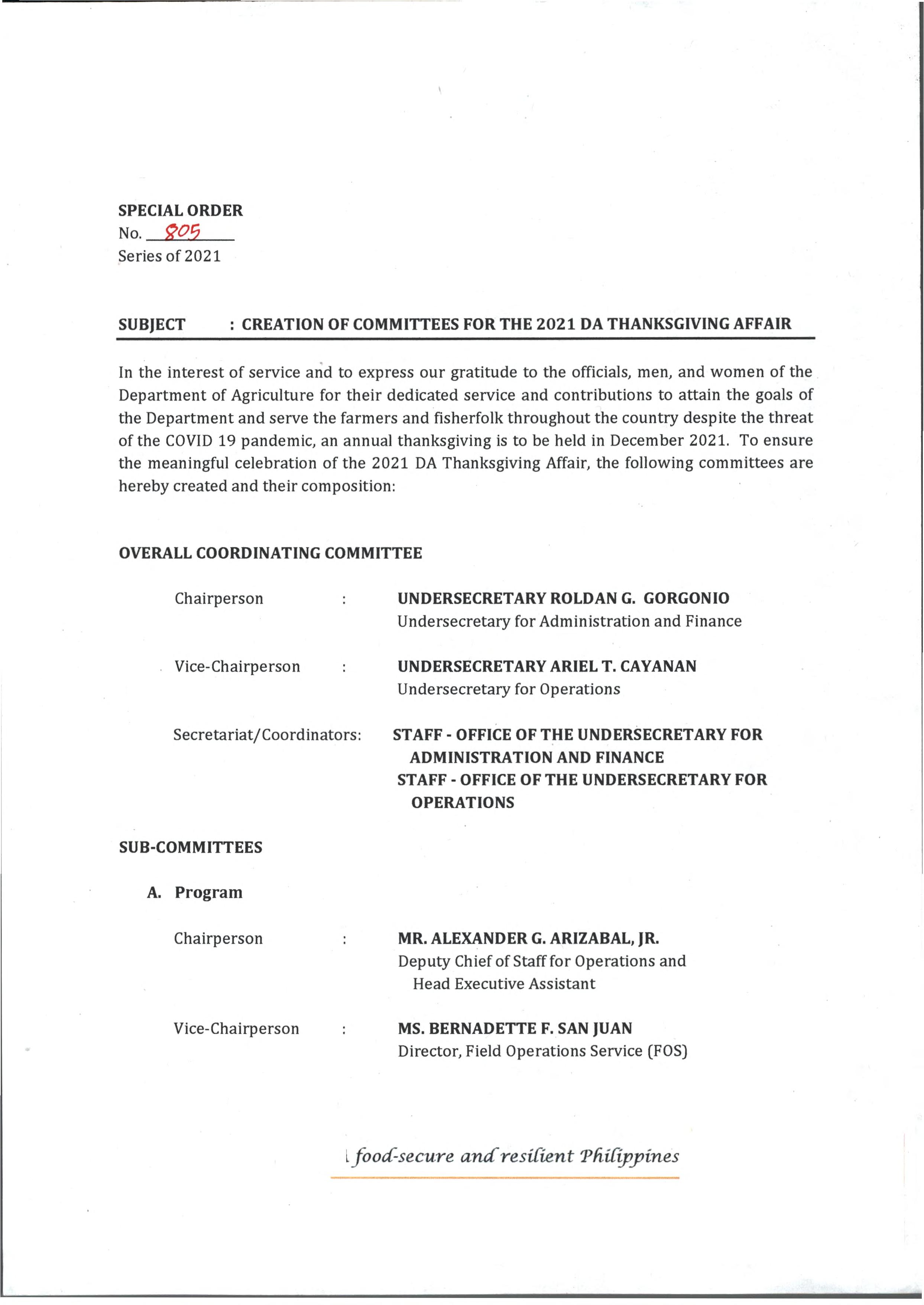 SO#805,s.2021_Creation of Committees for the 2021 DA Thanksgiving Affair