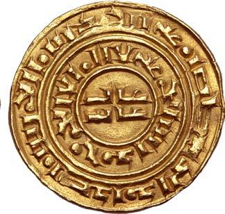 Italian States, Sicilia (Sicily, Kingdom). Frederick I (later Frederick II, Holy Roman Emperor) and Constance as Empress of the Holy Roman Empire, AV Tari. Amalfi mint, November 1198. Outer circle Kufic legend: ‘struck in his reign in the year five hundred ninety-five’; inner circle Latin legend: ⧾ FRE REX SICILIE around palm tree in fruit in central circle / Outer rim Kufic legend: ‘struck in the year one-hundred one-thousand ninety and eight; inner rim Kufic legend: ‘Constance imperatrix of the Romans’, around Latin cross in central circle. L. Travaini, ‘Le monete Sveve con legend arabe nel Regno di Sicilia (1194-1220)’ in RIN 1986, p.136, 2; MIR 36; MEC 14, p.166 fig. 3b; CNI XVII, p.10, 1, pl. 1, 14; G. Sambon, Repertario generale, 1113; M. Guglielmi, La monetazione degli Svevi nell’Italia meritionale, Serravalle RSM, 2000, p.67, 1; D. Spinelli, Monete cufiche, Napoli 1844, pl. 20, 1; R. Levinson, The Early Dated Coins of Europe 1234-1500, Clifton 2007, p.258; Friedberg 51. 0.83g, 24mm. Mint State; edge clipped. Very rare and of great numismatic importance.