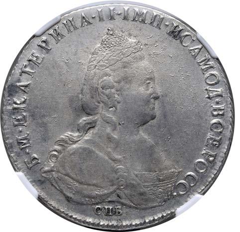 Russia, Empire. Catherine II AR Rouble. St. Petersburg mint, 1787. Yakov Afanasyev, mintmaster. Б • М • ЕКАТЕРИНА • II • ІМП • ИСАМОД • ВСЕРОСC •, crowned and draped bust to right; СПБ below / Crowned double-headed eagle facing with wings spread, wearing shield on breast depicting St. George slaying the dragon, and holding sceptre and orb; crown above, Я-A across lower fields, denomination and date around. Bitkin 244. 22.94g, 39mm, 12h.