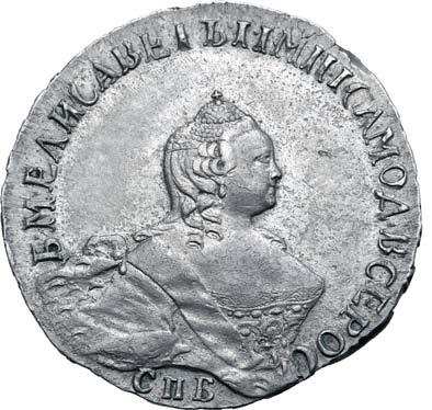 Russia, Empire. Elizabeth AR Poltina (50 Kopeck). St. Petersburg mint, 1755. Б • М • ЕЛИСАВЕТЪ • I • IМП : I САМОД : ВСЕРОС :, crowned and draped bust to right; СПБ below / Crowned double-headed eagle facing with wings spread, wearing shield on breast depicting St. George slaying the dragon, and holding sceptre and orb; crown above, Я-I across lower fields, denomination and date around. Edge inscription: C.ПЕТЕРБƔРХСКАГО ✿✿ МOHETHAГO ✿ ДВОРА. Bitkin 325. 12.69g, 32mm, 12h.