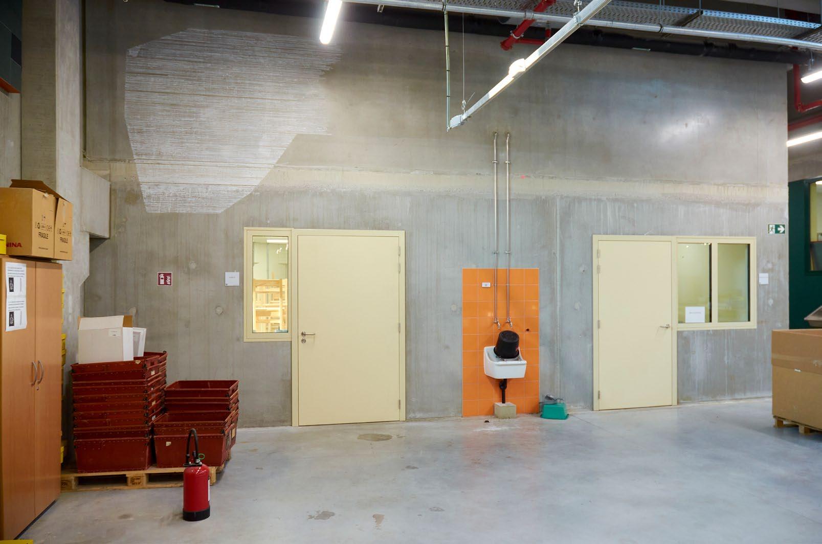The three of us walk down the long corridor, whose walls are coated in epoxy. The contours of our bodies are reflected in them like blurry ghosts. Nothing sticks to such a finish, as I well know, not even chalk. Henk had warned me about that at our meeting in the container office nearly a year ago and I thought I might have to draw on the ceilings, but those are covered in pipes and fire sprinklers.