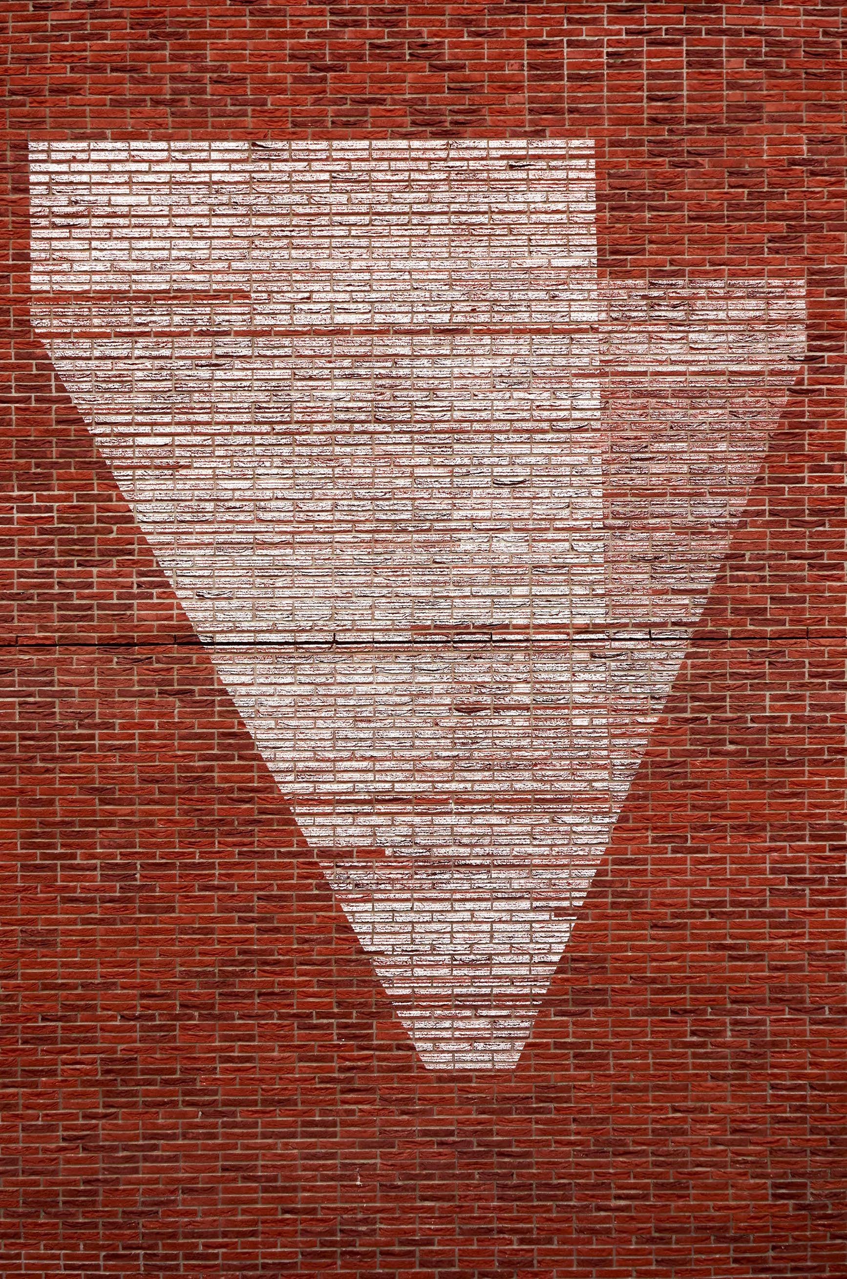 Een oude vrouw met een rollator vraagt wat de tekening voorstelt. ‘Het is een ijshoorntje zonder bolletjes’, zeg ik. Ze kijkt naar de tekening zonder iets te zeggen. ‘Je kunt er ook een driehoek in de vorm van een schip in herkennen. Met een beetje verbeelding drijft de driehoek op de muur, net zoals een schip op het water’, zeg ik. Bedenkelijk kijkt ze me aan en schuifelt verder. Twee jaar geleden tekende ik zo’n vier kilometer hiervandaan op het Noordereiland eenzelfde driehoek, maar dan kleiner, een soort zusje. Toen zei een buurtbewoonster: ‘Jouw schip heeft te weinig drijfvermogen en zal eenmaal te water onmiddellijk omkieperen. Kapseizen noemen we dat in schipperstaal. Wat jij doet, dat kan helemaal niet.’