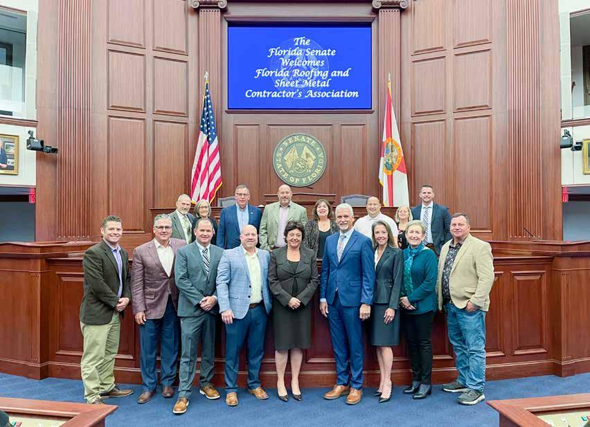 “Chris was able to schedule meetings with several key legislators who focused on business and educational topics important to the industry,” stated Hall. “My expectations were exceeded for our first Roofing Day in Tallahassee. Our pre-Capitol and Capitol meetings were fantastic, the access provided and interaction has been incredible.” Hall had been advocating for Roofing Day for the past few years and the team’s efforts paid off. Discussions were held with Senate President Kathleen Passidomo and Senator Keith Perry, FRSA member and industry supporter. Additional meetings included Representatives Alex Andrade, Mike Giallombardo and Jason Shoaf and Senators Nick DeCeglie and Travis Hutson. Time was scheduled to meet with DBPR Secretary Melanie