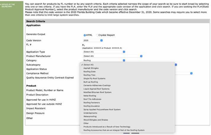 For anyone that has been involved in a roofing project, product approvals are an integral part of the process and are often overlooked considering the effort and expense that go into them. In the most basic terms, the building code defines the minimum threshold of performance for a roof. In Florida, the 900-pound gorilla is wind uplift requirements. The whole process of construction is regulated by the building code to ensure that the life safety of the occupants of the building is preserved during a wind event. Design pressures, live loads, deadloads and more are all meant to cover the needs of performance for any portion of the building. Wind speed maps and project site conditions help to focus the requirements for the roof system to be used on the project. To this end, there is a lot of math involved to determine the requirements of how the roof can be constructed. In Florida, integral components of the roofing system (see the dropdown list on page 18) need to substantiate a product’s ability to perform to the requirements of the specific project. Furthermore, the compatibility with other products in the assembly must be substantiated as well because all the components must become a working roof system.