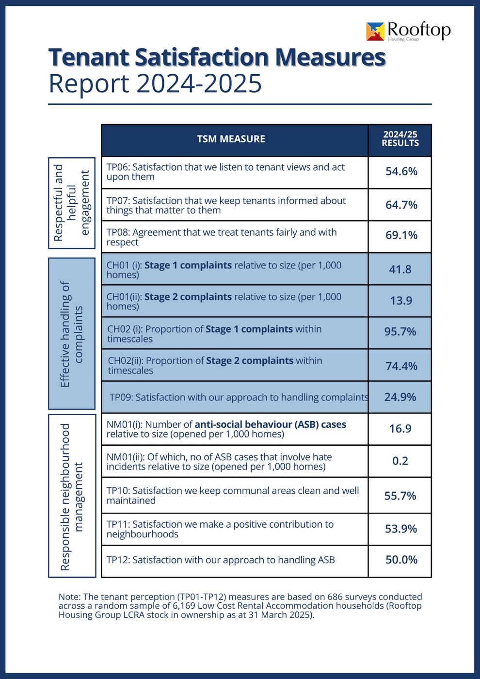 In April 2023, the Regulator of Social Housing introduced the Tenant Satisfaction Measures, TSMs for short, to measure how well social housing providers are performing. This is to make sure they are held to account for their actions and give customers greater visibility of their performance.