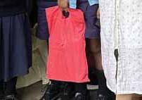 Below: Sanitary pads being distributed.