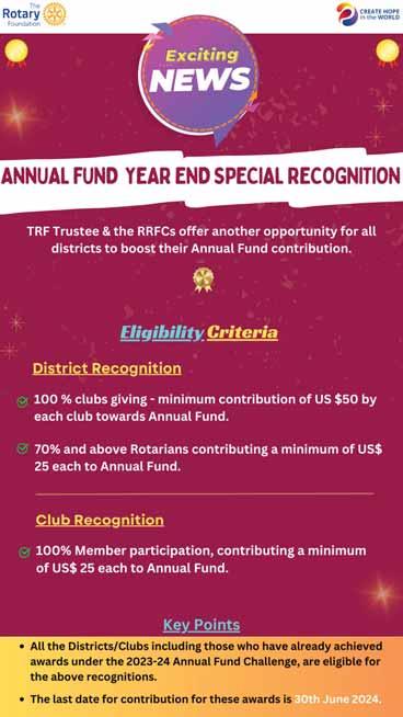 I enjoyed reading the various projects done by Rotary clubs in Rotary News Plus , April 2024. The details given in these articles motivate Rotarians to do good for the community and also let them know different ways to reach out to local communities.
