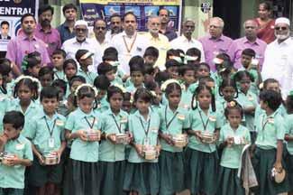 Stainless steel snack boxes were given to students of the Panchayat Union Primary School at Kodipallam village. The club donated sports equipment to the Government Nandanar School and health supplements worth `75,000 for TB patients.
