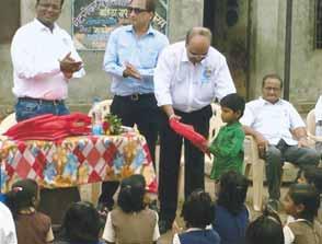 Stationery material were given to 100 children at the Government Middle School at Pachpedi village near the city.