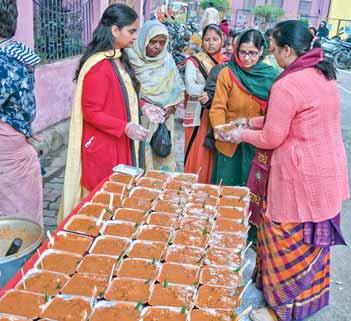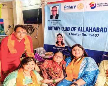 Diwali was celebrated with 30 elderly inmates at the Ravindra Nath Gaur Anand Vriddhashram, an old age home. Rotarians led by project chair Neeraj Bhargava felicitated the senior citizens. Around 90 students (Class 1–10) at the Saraswati Shishu Mandir took part in rangoli and diya decoration competition on Diwali eve. The first three winners got gifts and certificates, while consolation prizes were given to others.