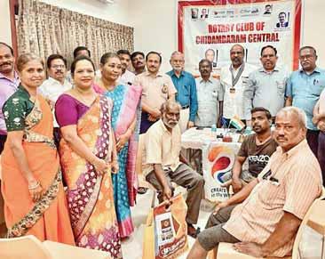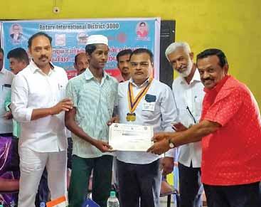At the 252nd eye camp being held on third Sundays at the Gandhinagar School, around 190 patients were screened and 106 of them were chosen for surgery. A wooden cot (`30,000) was donated to Siddha Hospital, Mannar, in Sri Lanka. Club president G Peethambaram donated `21,000 to TRF. Computer chairs were given to the Government Municipal High School, Konamedu.