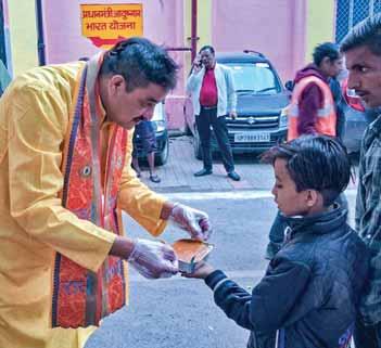 Marriage anniversary of club members of RC Kanpur North, RID 3110, are celebrated through acts of service. Under the club’s initiative named Project Annapoorna club member Ajay Shankar Dixit and his wife, Indu Dixit, distributed food to over 500 individuals at the Ursula Hospital, Kanpur. Similarly, club members Ajai Veer Singh and his wife Sumitra Devi distributed food to 500 individuals at the same hospital.