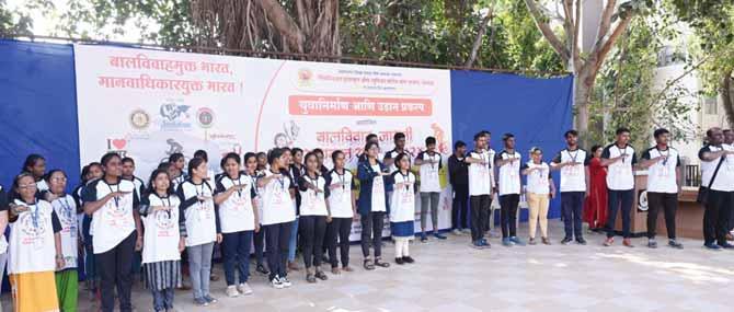 In the course of the journey, Rotarians held street plays, interacted with college students at Shegaon, and called for stringent action against child marriage during an event at the Trimurti International School, Newasa Fata.