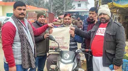 In a bid to promote road safety, RC Kushinagar, RID 3120, distributed helmets to two-wheeler riders and insisted on wearing one whenever they ride their vehicle, even for a short distance. The Rotarians urged the pillion riders too to wear helmet for safety purpose. A special session on road safety was held for youngsters where the Rotarians highlighted the dangers of rash driving and riding without helmet.